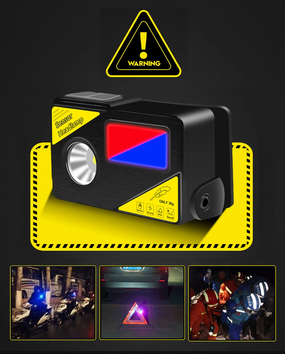 ПредупреждениеВспомогательные огни с красными и синими огнями, могут использоваться в качестве предупреждающих огней ночью, удобно и практично