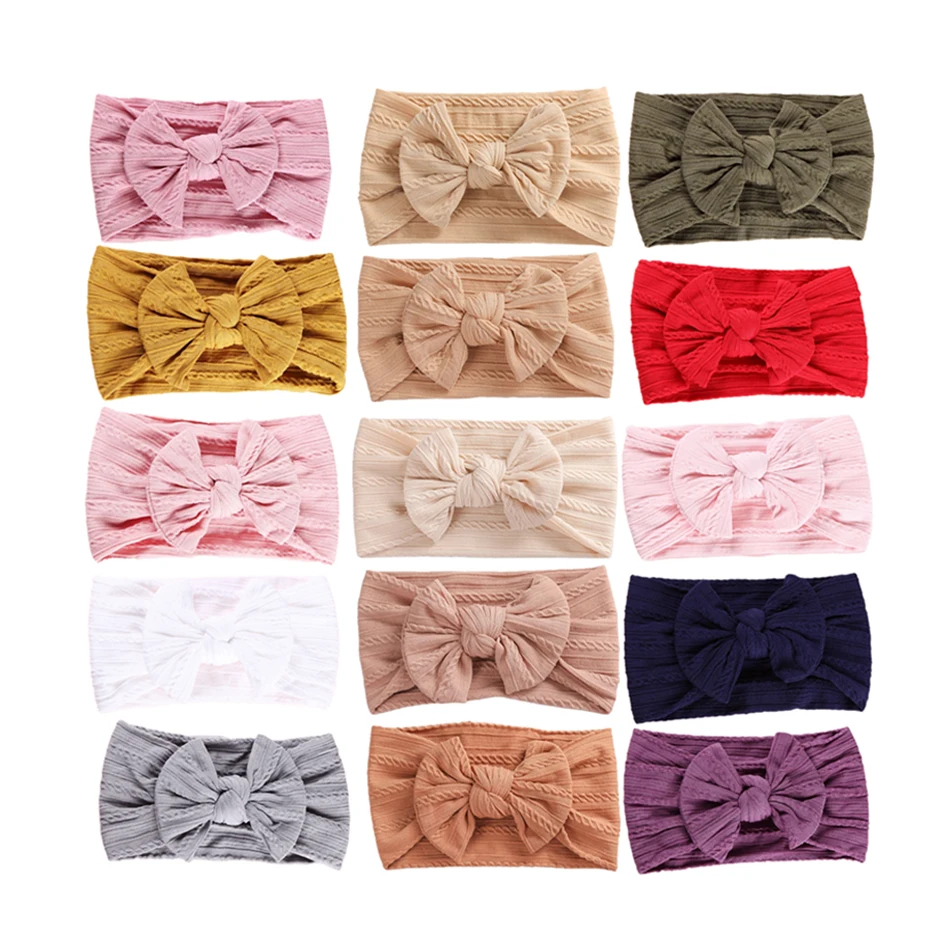1 шт. нейлоновые повязки на голову с бантом, вязаная однотонная пов...