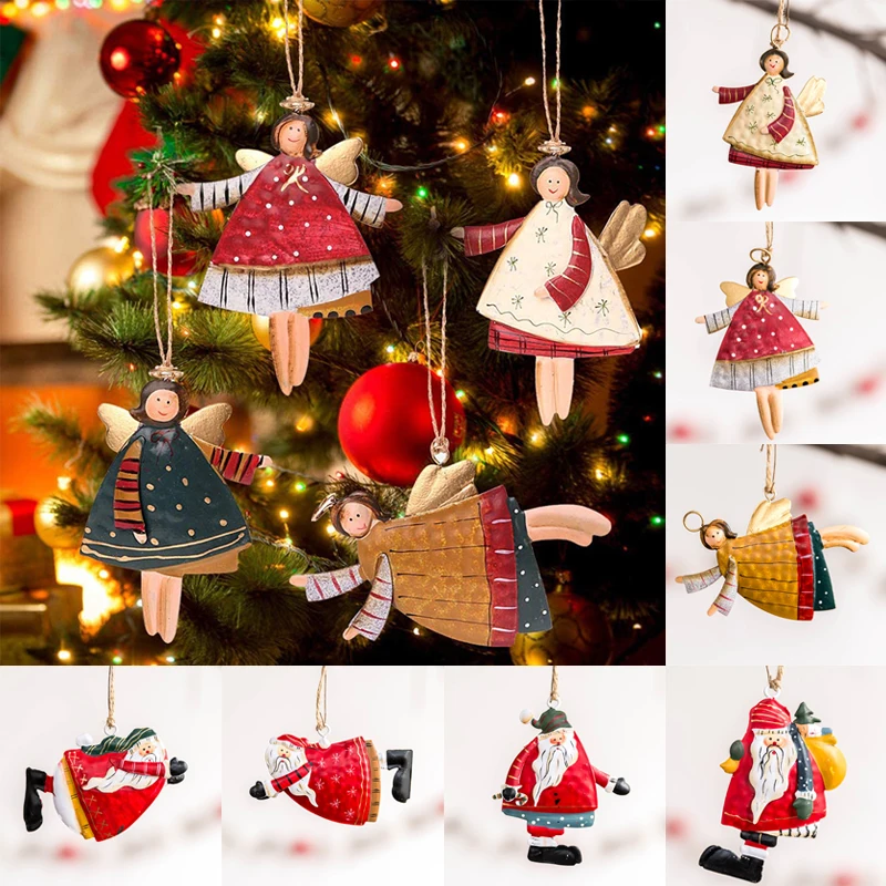 Подвесные Украшения для рождественской елки, железная подвеска с Санта-Клаусом, ангелом, креативная Подвеска из кованого железа, подарок для детей на новый год 2022