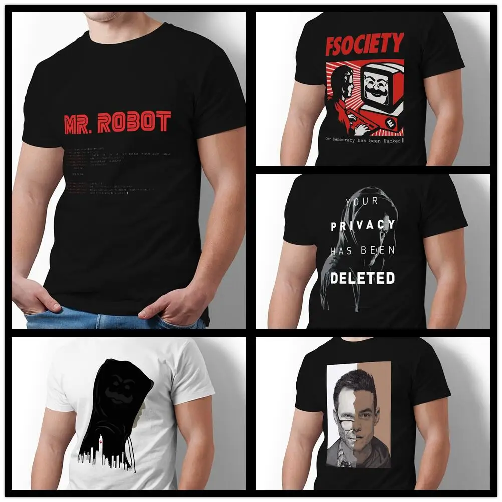 Футболка Mr Robot, базовая забавная футболка из 100 хлопка, Мужская футболка с принтом и короткими рукавами, 5xl