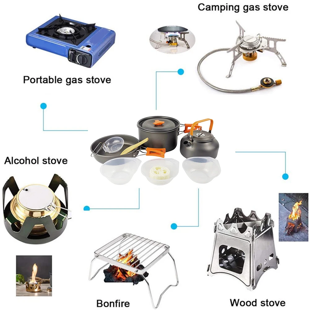 Портативная посуда для кемпинга, набор чайников для 2-3 человек, оборудование для готовки на открытом воздухе, стандартная кухонная утварь, принадлежности для пешего туризма и пикника