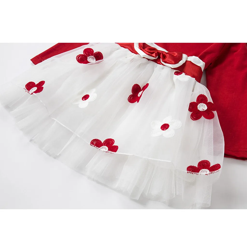 Детские осенне-зимние платья для девочек, платье принцессы с длинным рукавом, тюлевые Лоскутные Платья с цветочным бантом для вечеринки, детская одежда