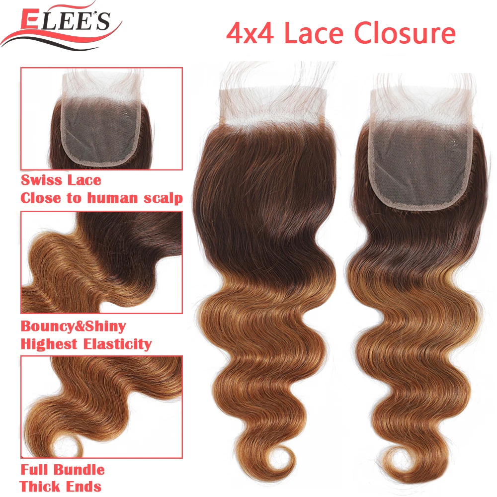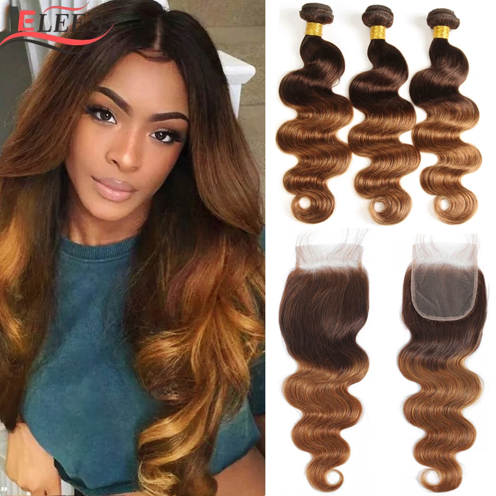 Бразильские волнистые пучки с застежкой T430, коричневые человеческие волосы, пучки с застежкой, пупряди с Реми и омбре с застежкой