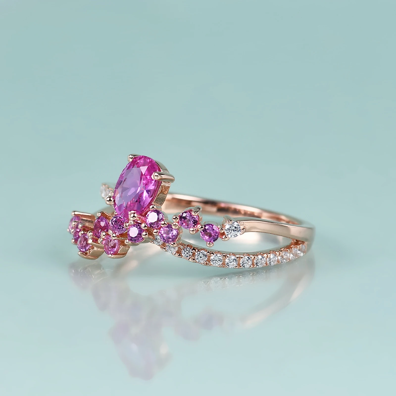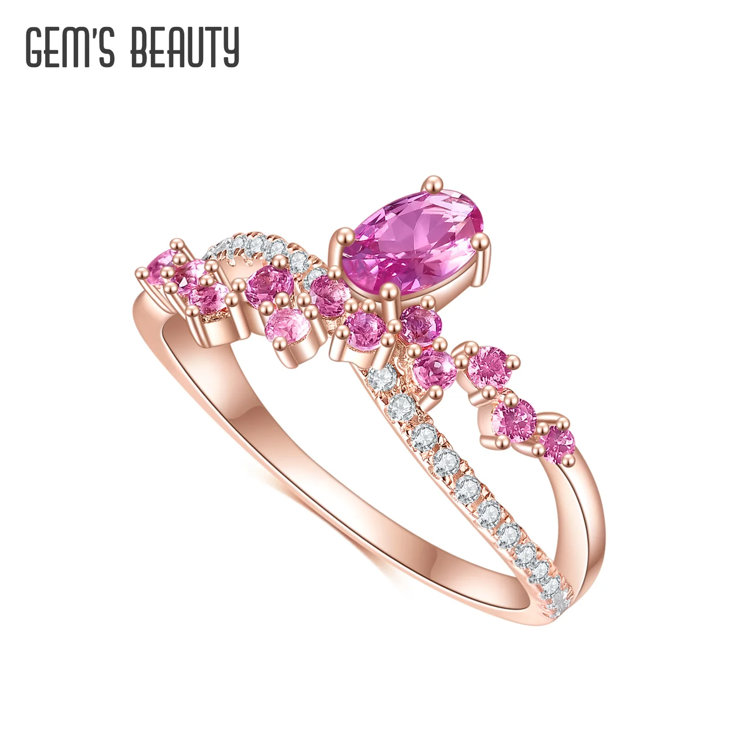 Женские кольца ручной работы, из стерлингового серебра с розовым сапфиром, Овальной Огранки