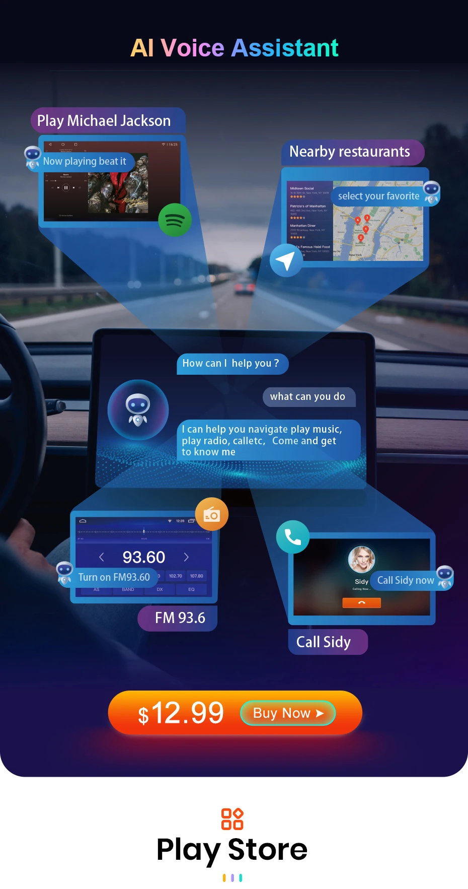GPS Navigation mapBuilt-in offline map, free update (support Igo/Waze/Google map/Navite)