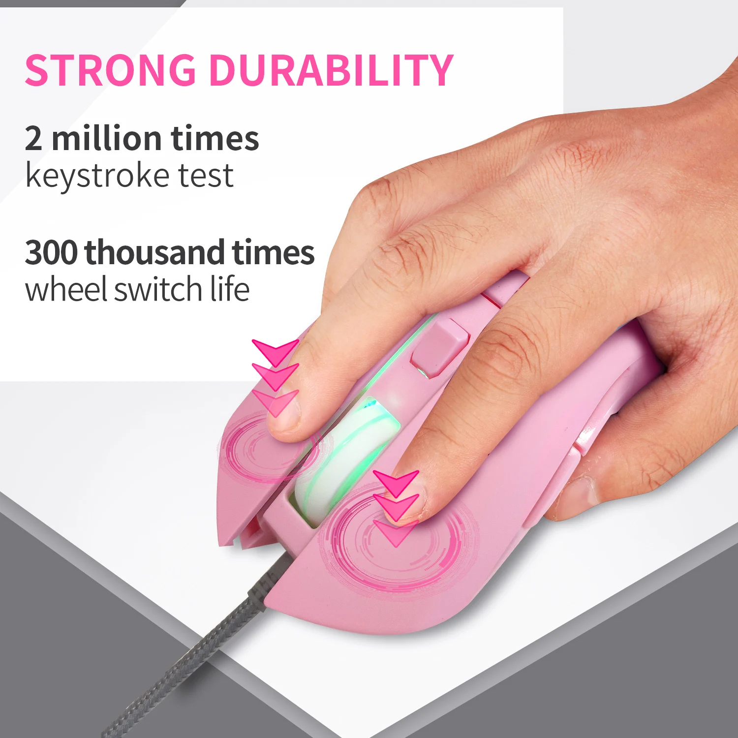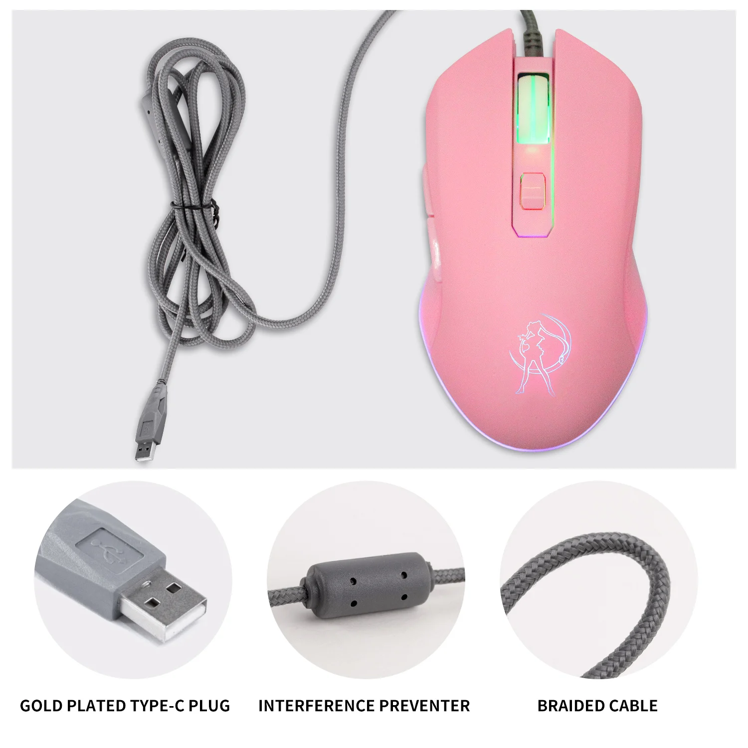 Мышь компьютерная игровая Проводная с розовой подсветкой, 3200DPI