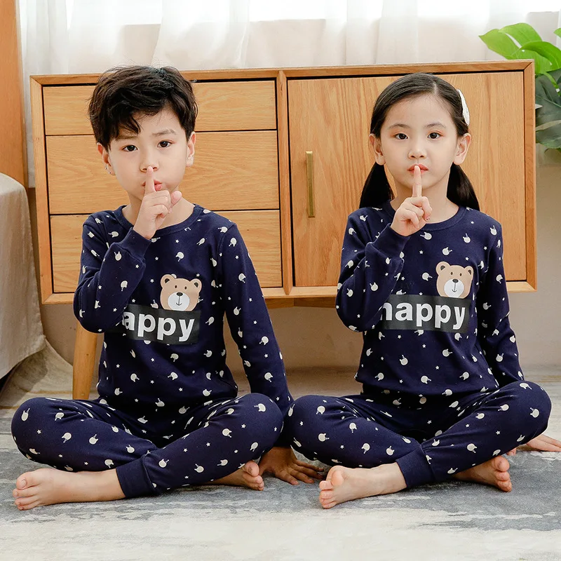 Пижама для мальчиков и девочек, из 2 предметов, осенняя, хлопковая