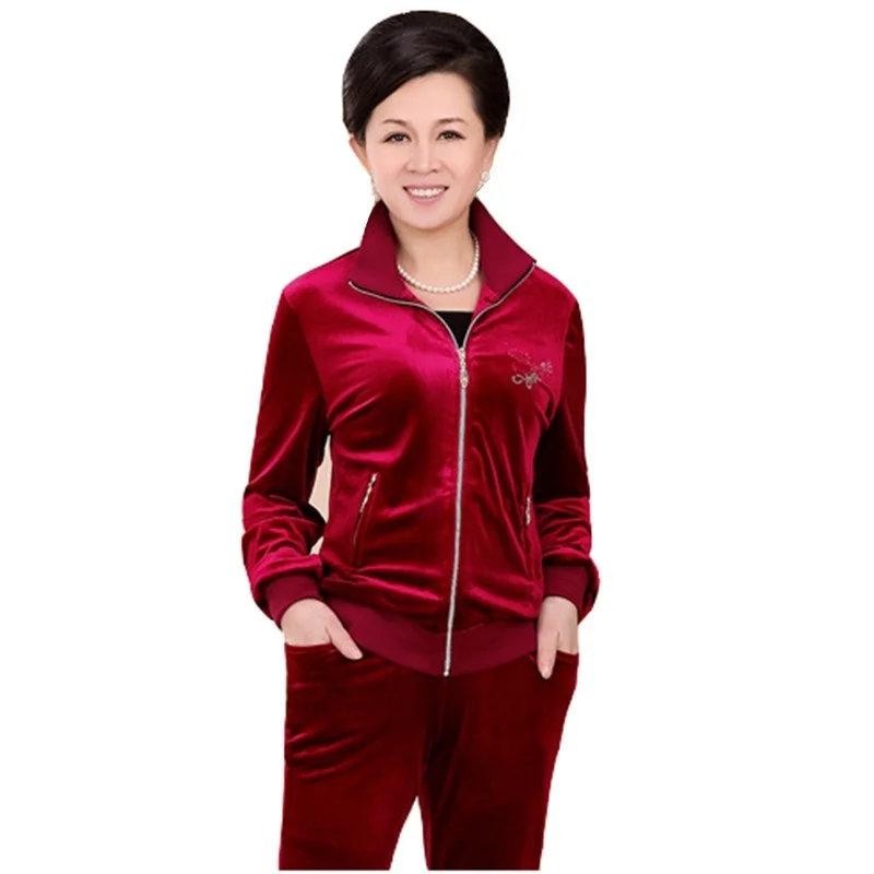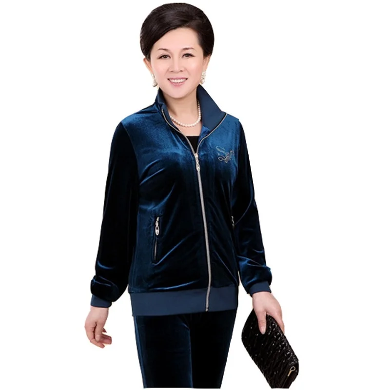 Новинка, вельветовые спортивные костюмы для женщин, весна-осень, новая модель, Женское пальто и брюки для женщин среднего возраста, бархатный костюм из двух предметов, 173