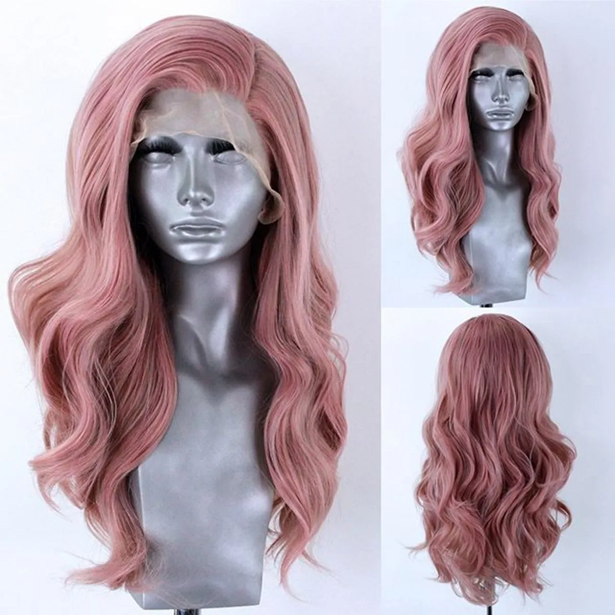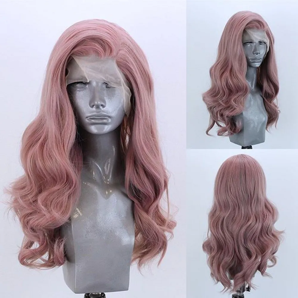 Парик розового цвета на сетке спереди, длинные волнистые волосы, 13x 4, парик на сетке спереди, средней части, синтетические волосы, парики для женщин
