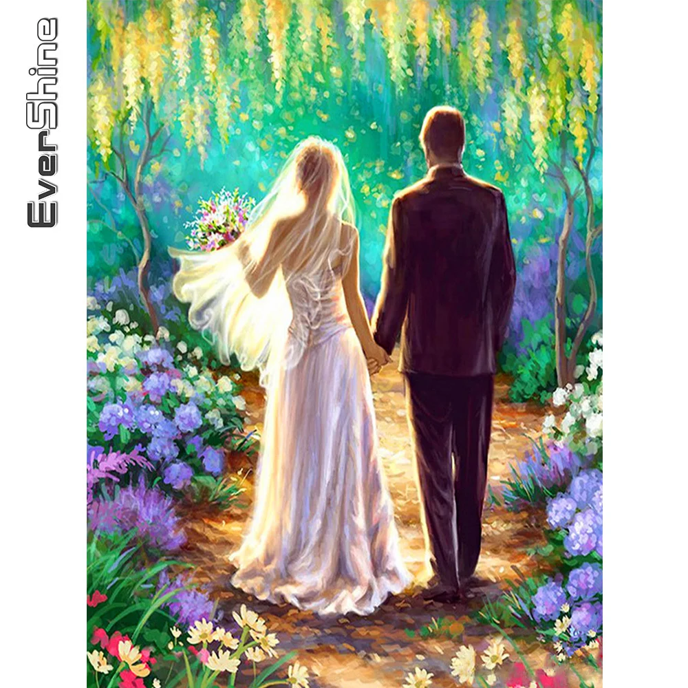 Набор для алмазной вышивки пар Evershine, Набор для творчества, свадебная мозаика, полноразмерная, квадратная, круглая, с рисунком Стразы