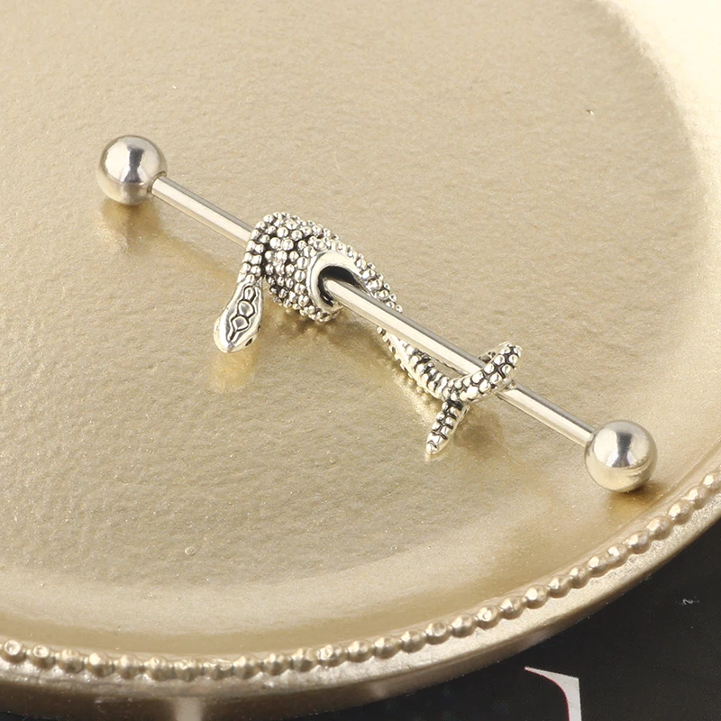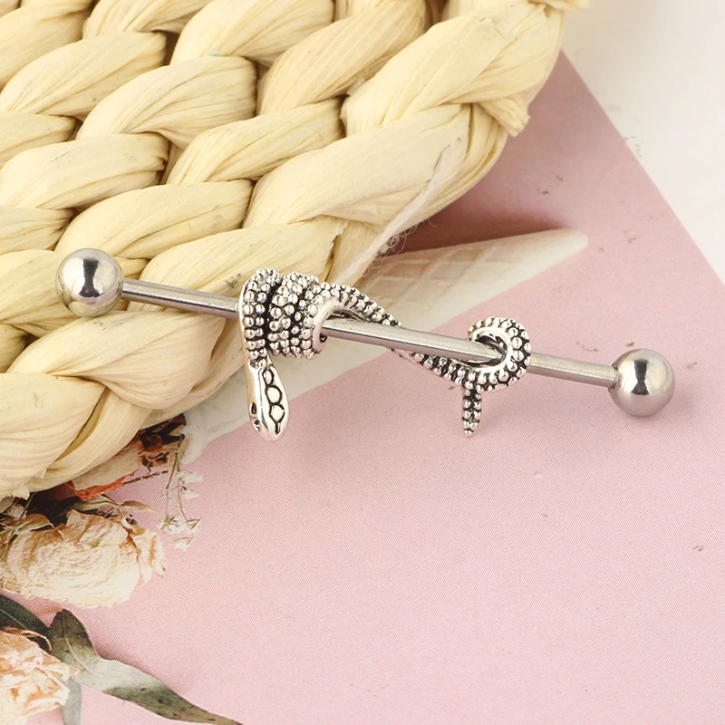 1 шт. 14g Нержавеющая сталь длинный индустриальный пирсинг змея Лун...