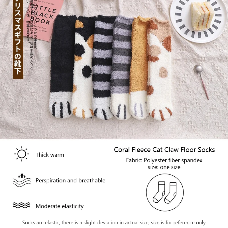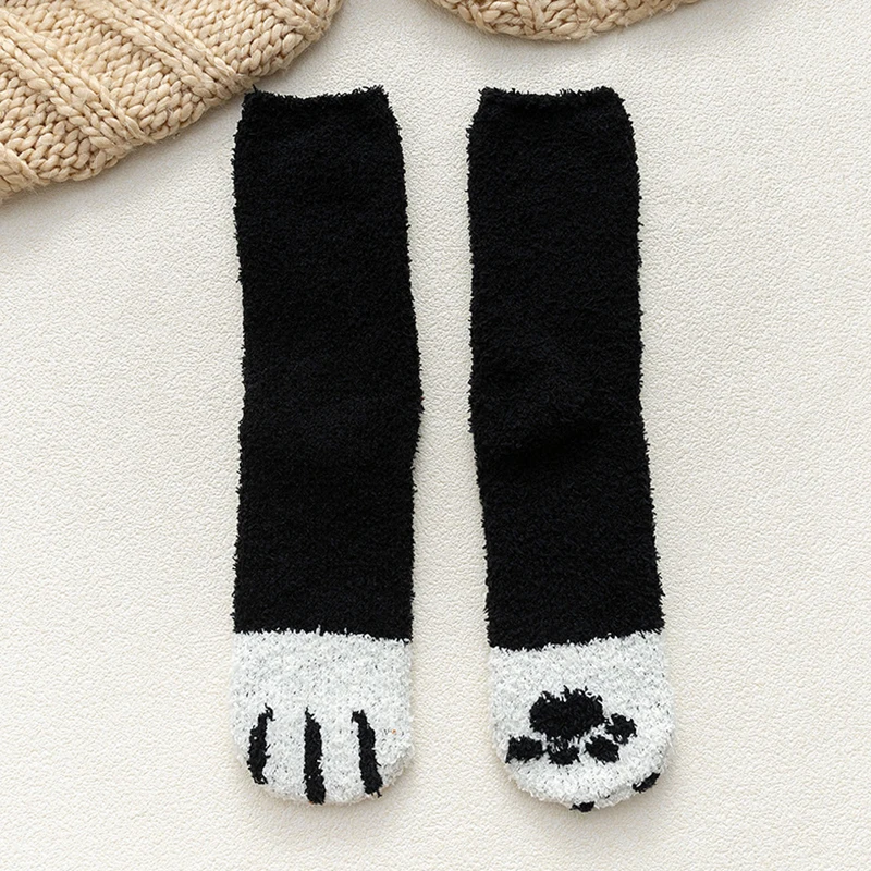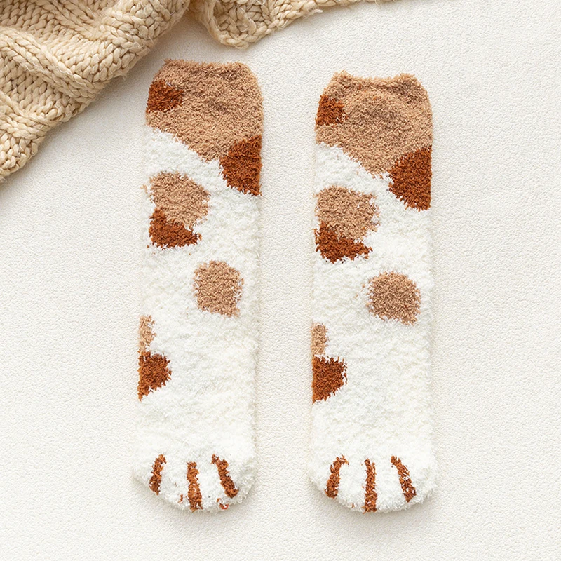 Осенне-зимние носки с кошачьими крапанами, 1 пара, плюшевые носки из кораллового флиса, милые плотные теплые носки для сна, женские носки-трубы