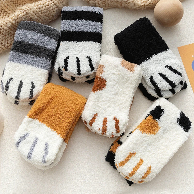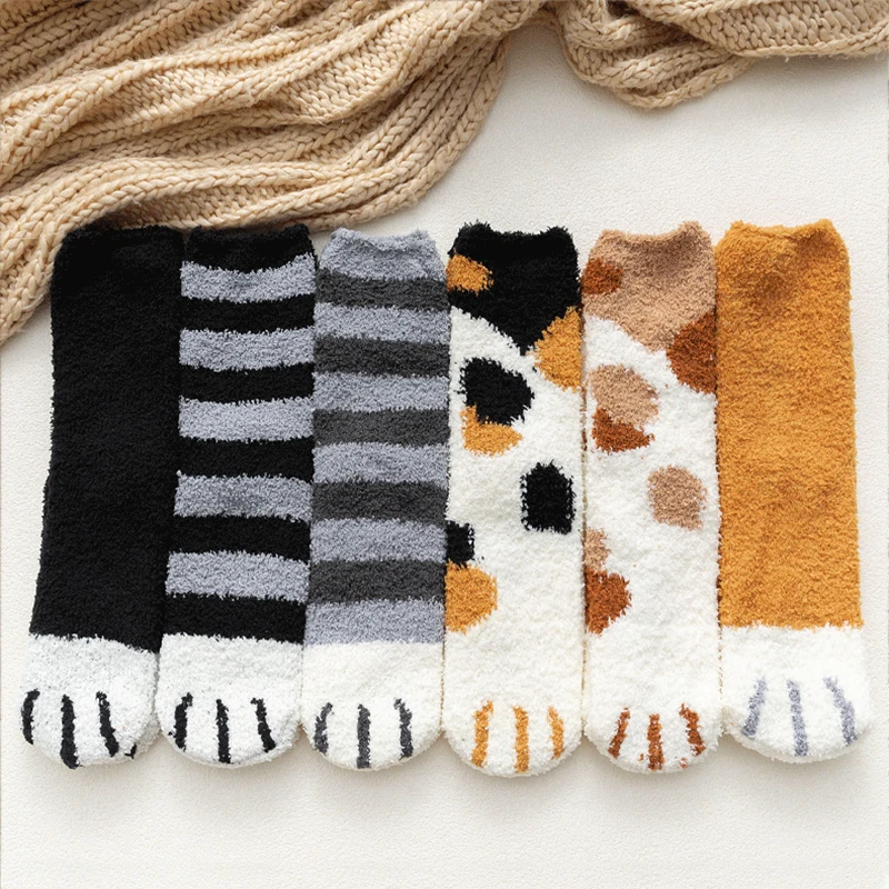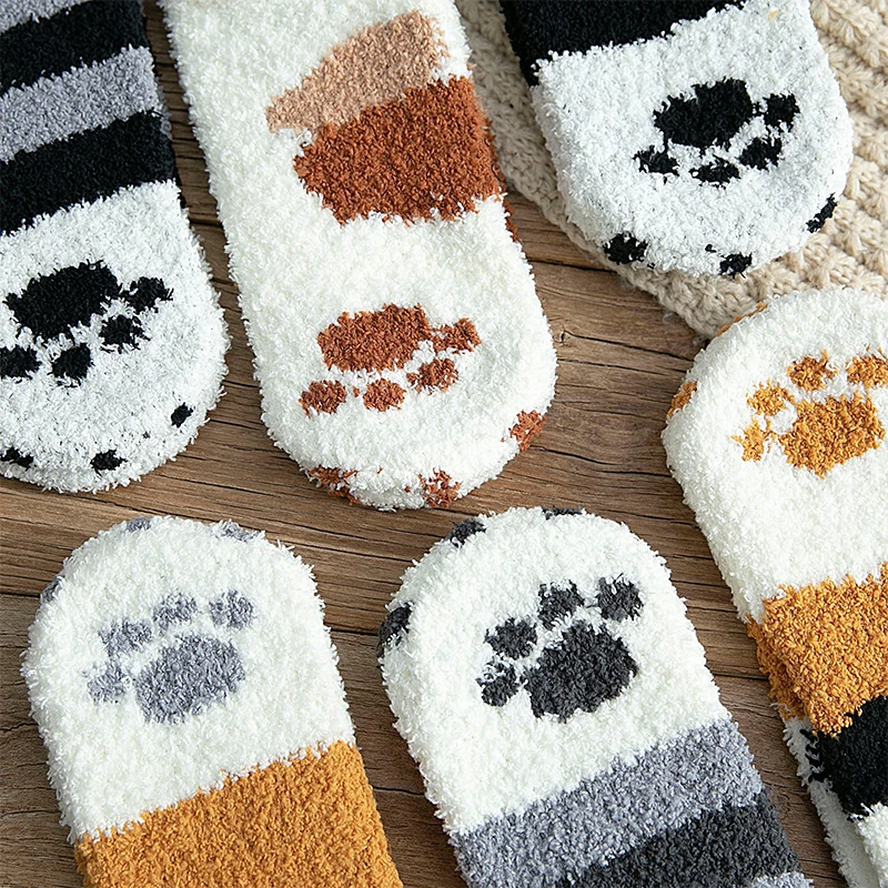 Зимние теплые носки в виде кошачьих лап для женщин, весенне-осенние...