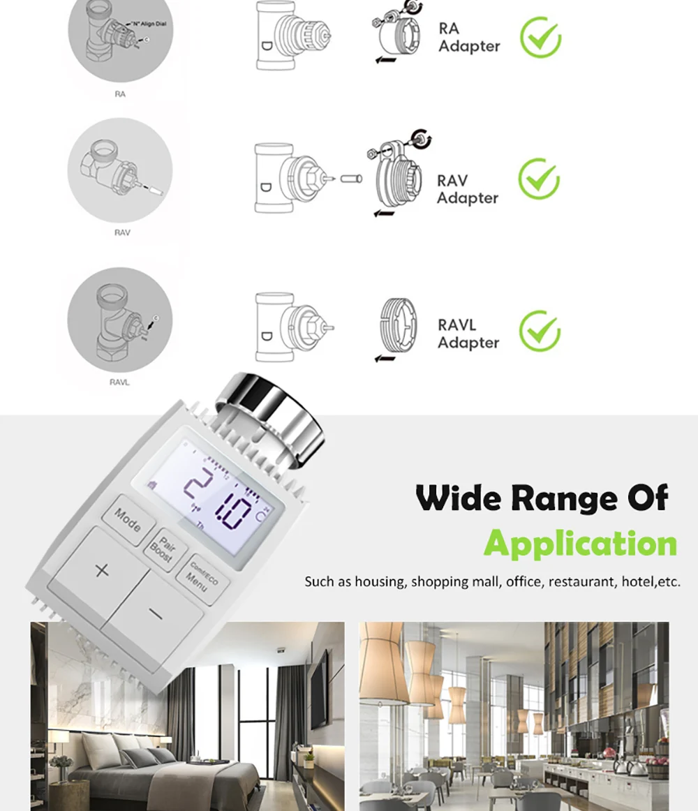 Термостат радиатора подходит для всех общих радиаторных клапанов и легко монтируется-без необходимости слива воды или вмешательства в систему отопления.