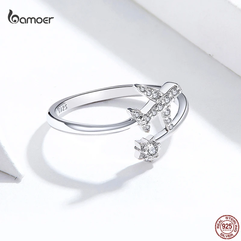 Женское кольцо Bamoer, модное регулируемое кольцо из настоящего стерлингового серебра 925 пробы с открытым кольцом для путешествий, универсальные ювелирные изделия, подарок