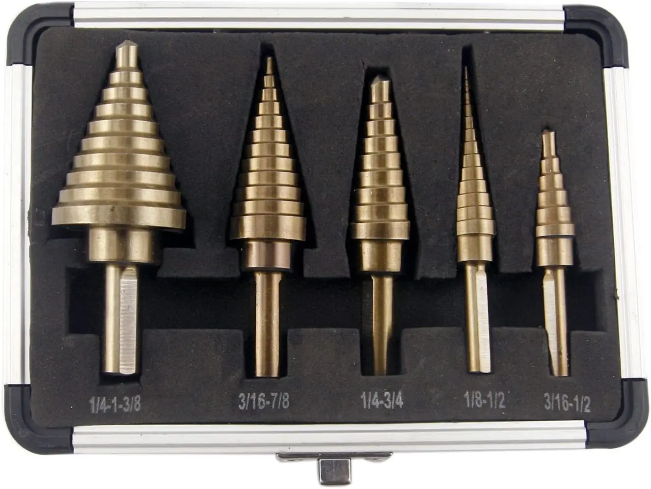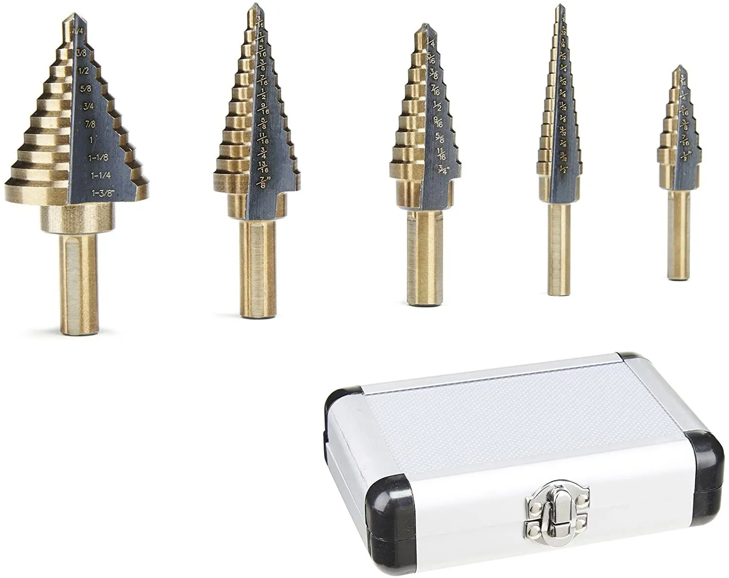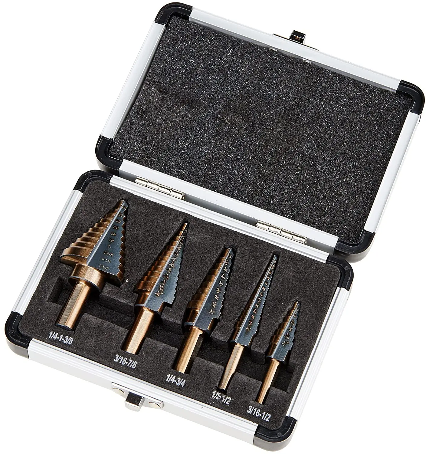 Быстрорежущая сталь, кобальт, несколько отверстий, 50 размеров, набор ступенчатых Сверл с алюминиевым чехлом, 5 шт.