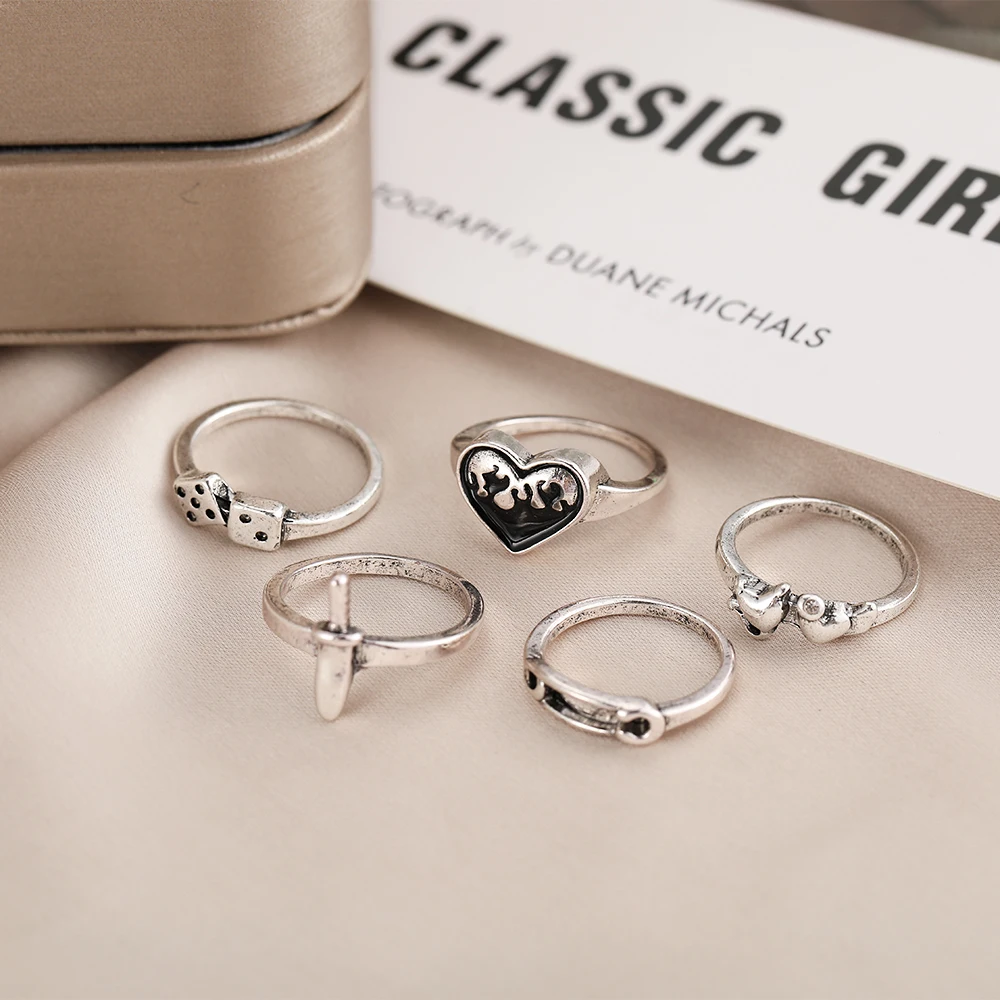 Женский винтажный набор колец в виде сердца и меча, серебряного цвета