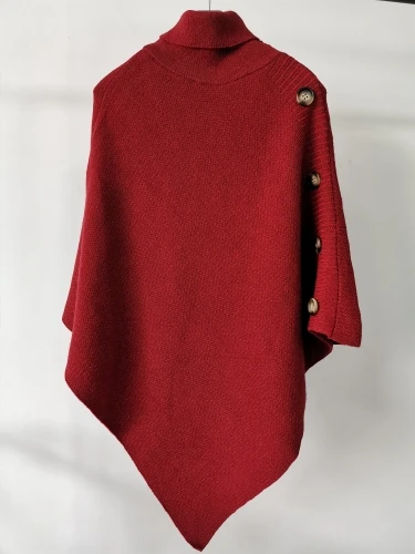 2022 осенне-зимнее пончо на пуговицах, Женский Свитер оверсайз, водолазка, джемпер, вязаная одежда, винтажная накидка с рукавом летучая мышь, пончо