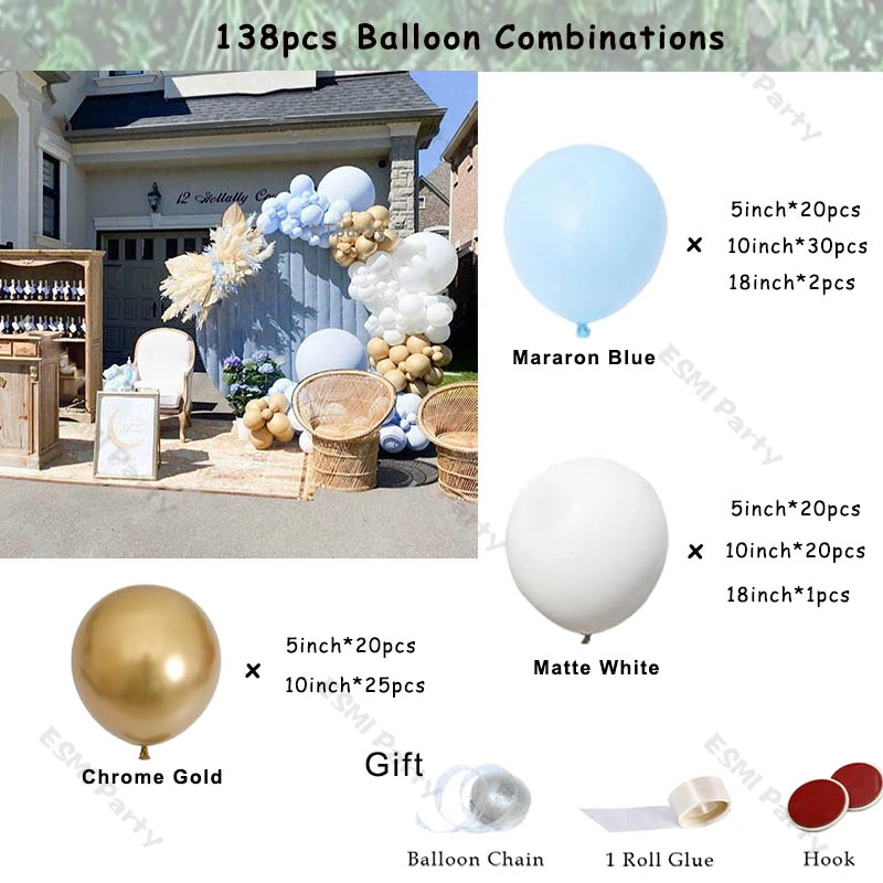 Синий Макарон (5 дюймов * 10 шт., 10 дюймов * 20 шт., 12 дюймов * 5 шт., 18 дюймов * 1 шт.)