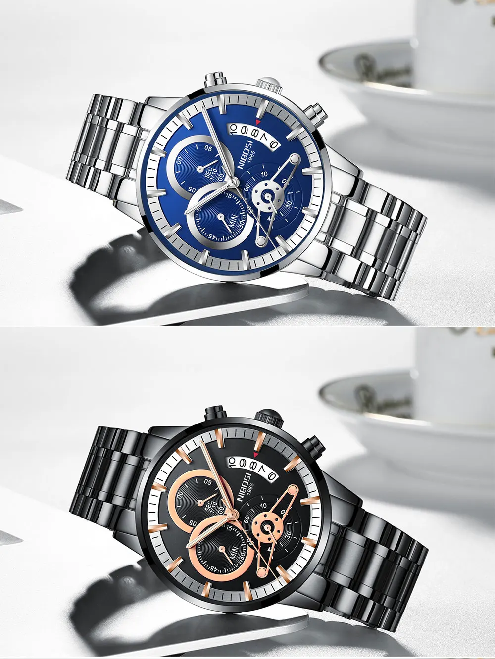Часы наручные NIBOSI Reloj Мужские кварцевые, брендовые Роскошные м...