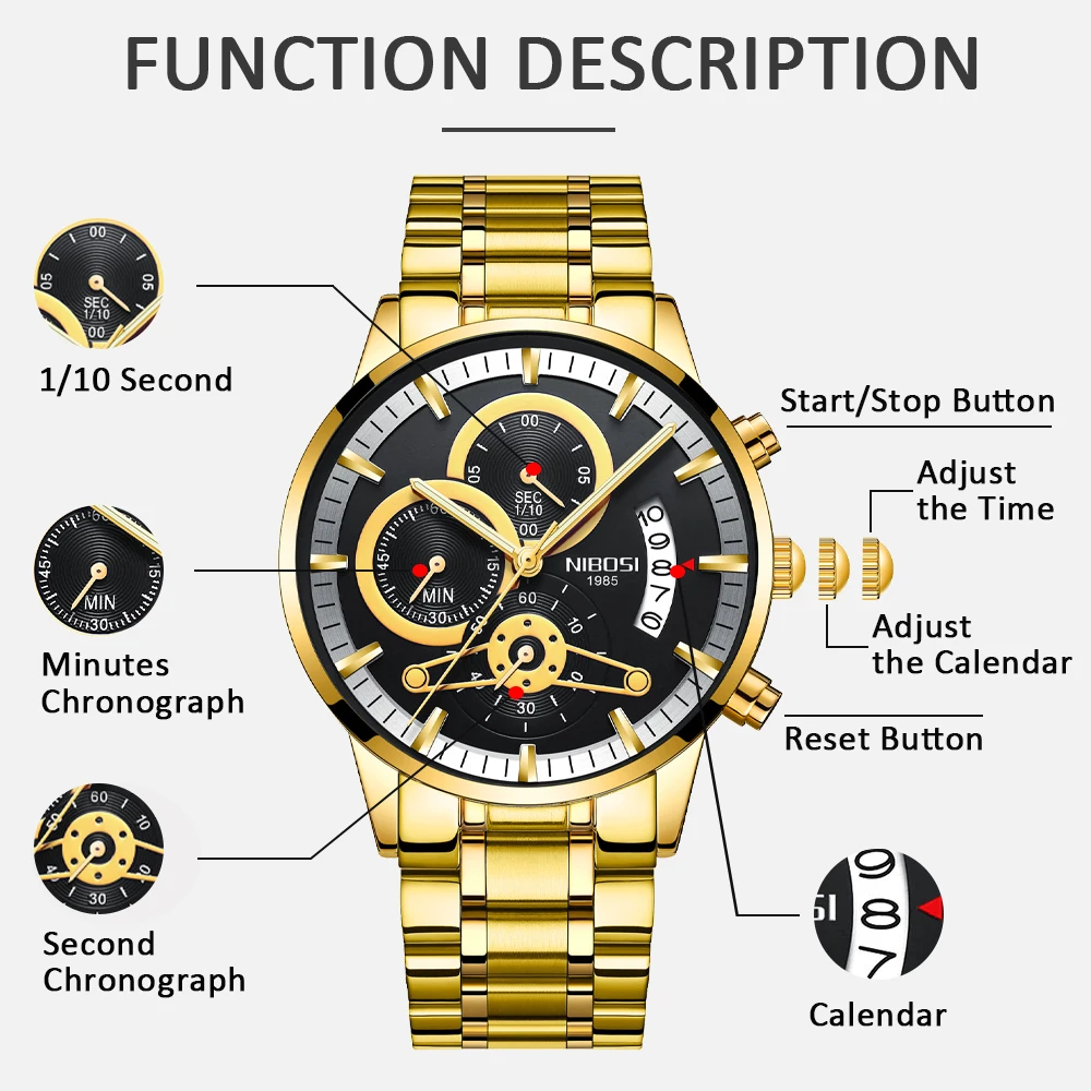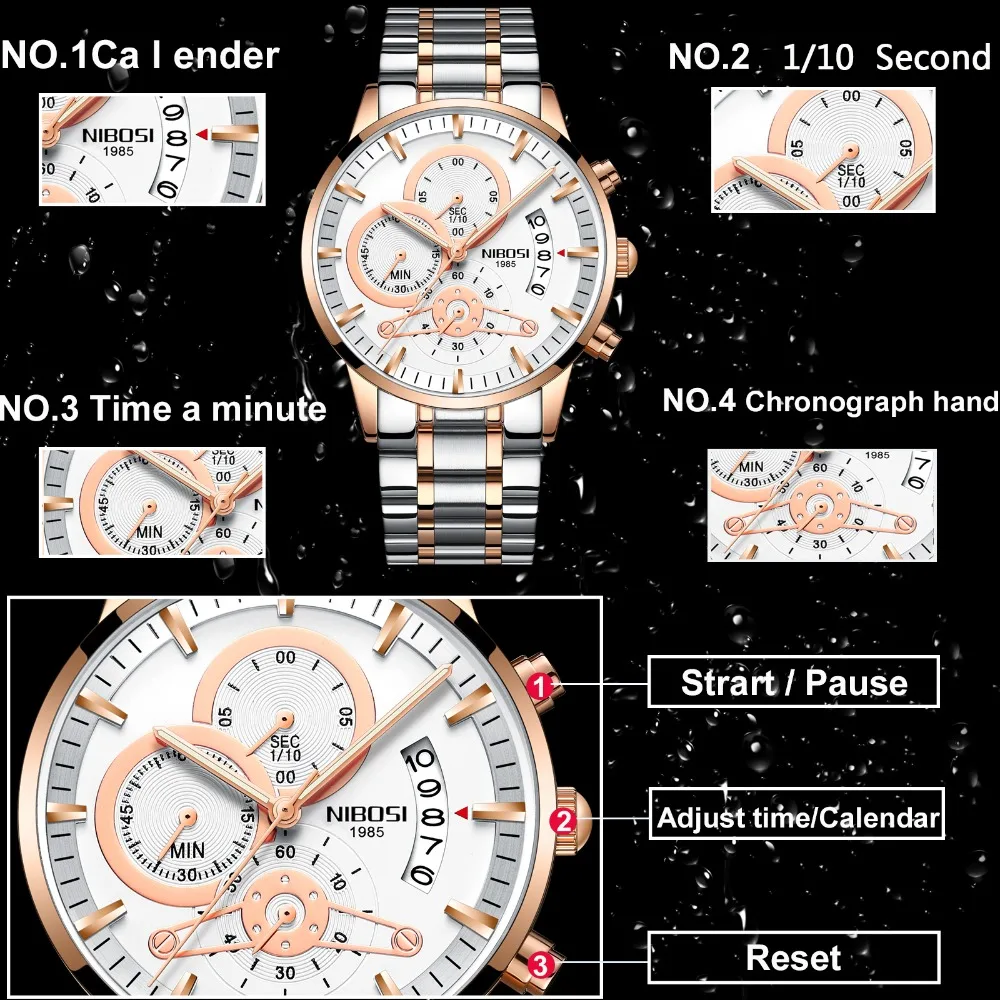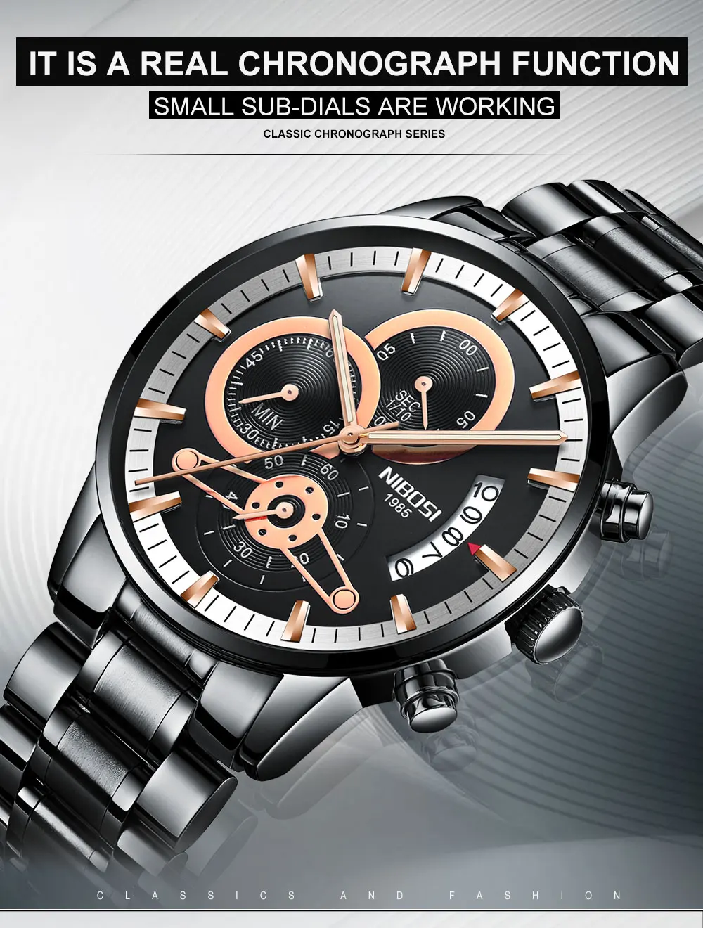 Часы наручные NIBOSI Мужские кварцевые, брендовые Роскошные водонеп...