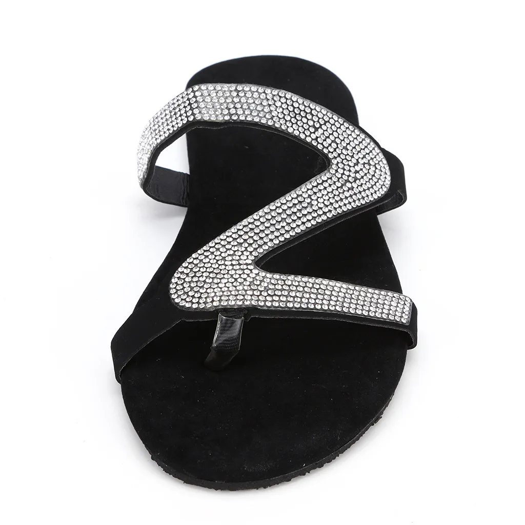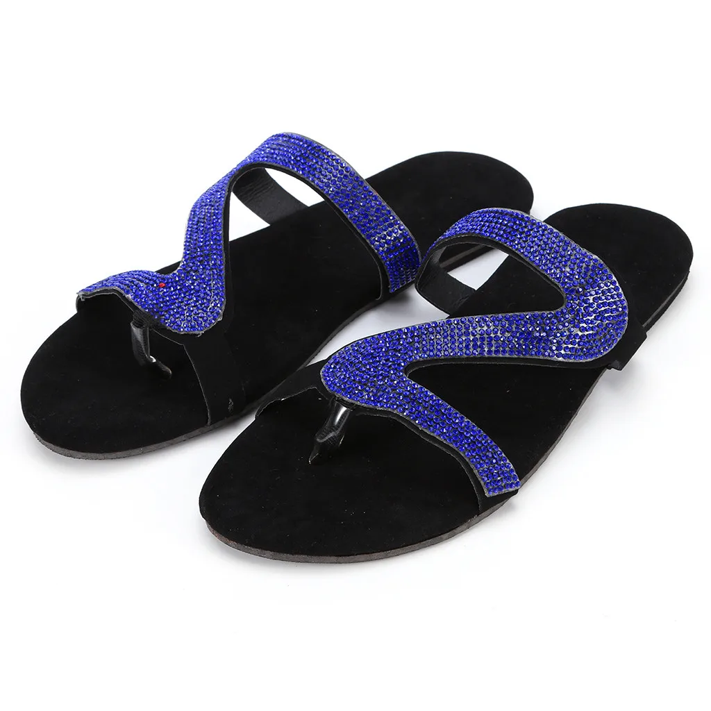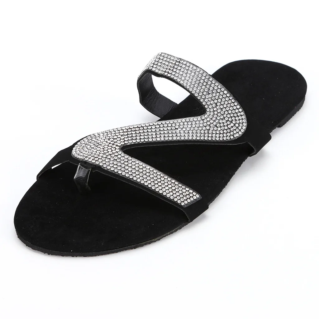 Летние сандалии, женская обувь на плоской подошве, 2021, новые повседневные кожаные сандалии, женские однотонные, со стразами, в римском стиле, большие размеры, на плоской подошве, тапочки сандалии обувь