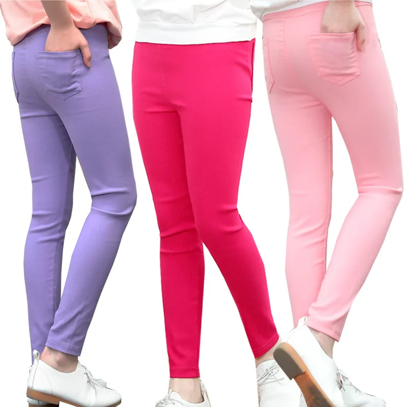 Брюки-Карандаш для девочек, Новинка весна-осень 2021, Детские облегающие брюки, студенческие эластичные Универсальные леггинсы карамельных цветов
