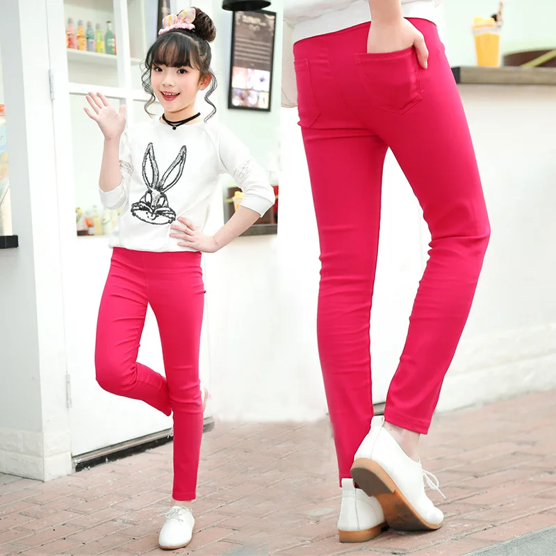 Узкие брюки для девочек; Новинка 2021 года; Сезон весна-осень; Детские узкие брюки; Универсальные эластичные леггинсы ярких цветов для студентов