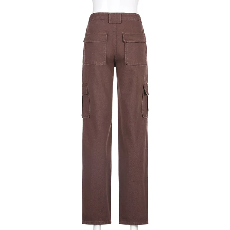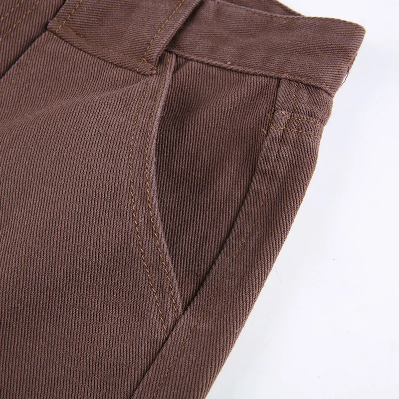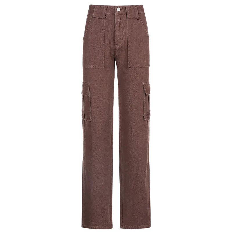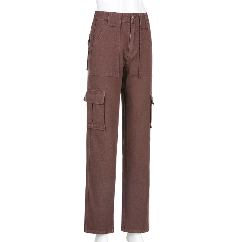 Женские мешковатые джинсы Y2K, коричневые свободные брюки с высокой талией в уличном стиле, модные хлопковые джинсовые спортивные брюки в стиле Харадзюку, 2021