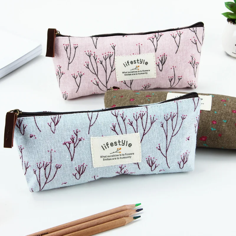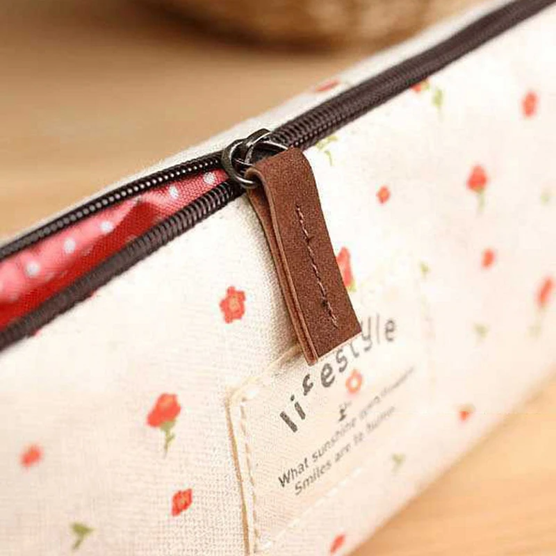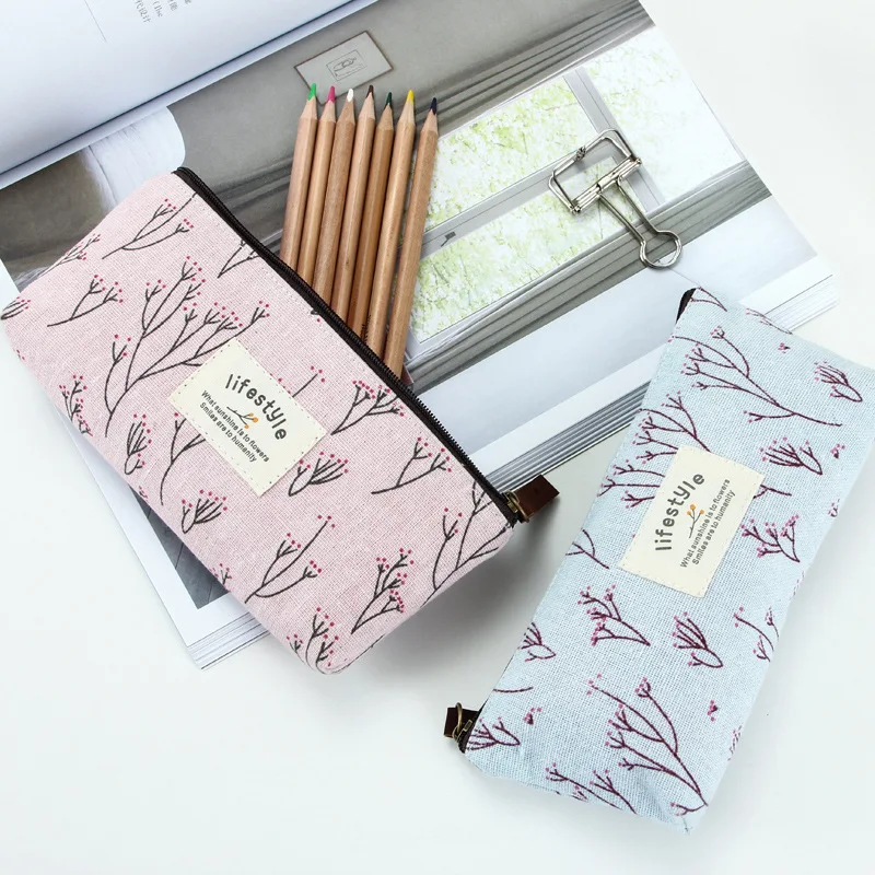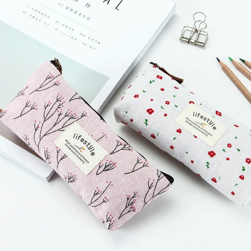 Холщовые пеналы для карандашей, с изображением цветов, на молнии