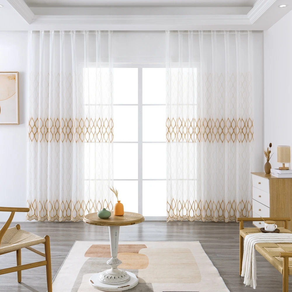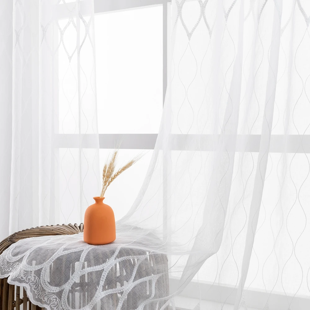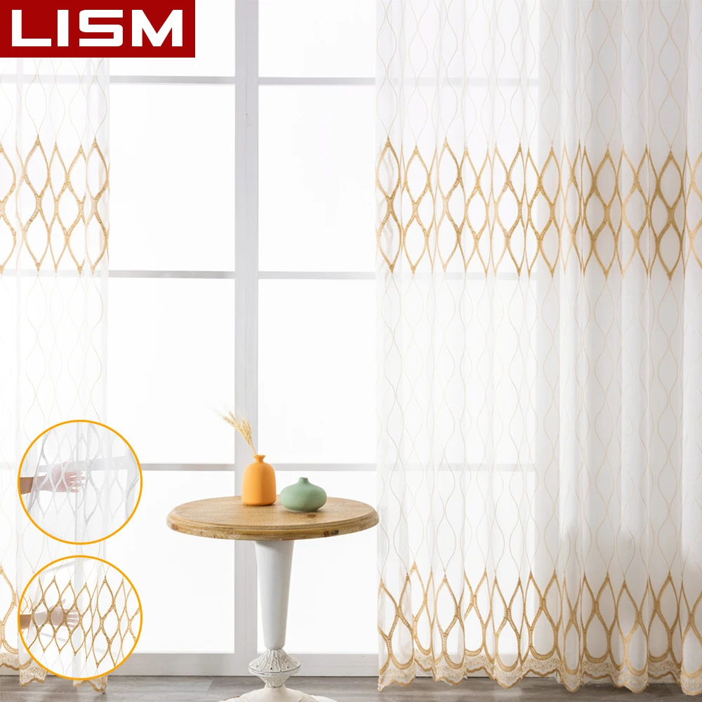 Прозрачные шторы LISM с геометрической вышивкой, тюлевые занавески ...