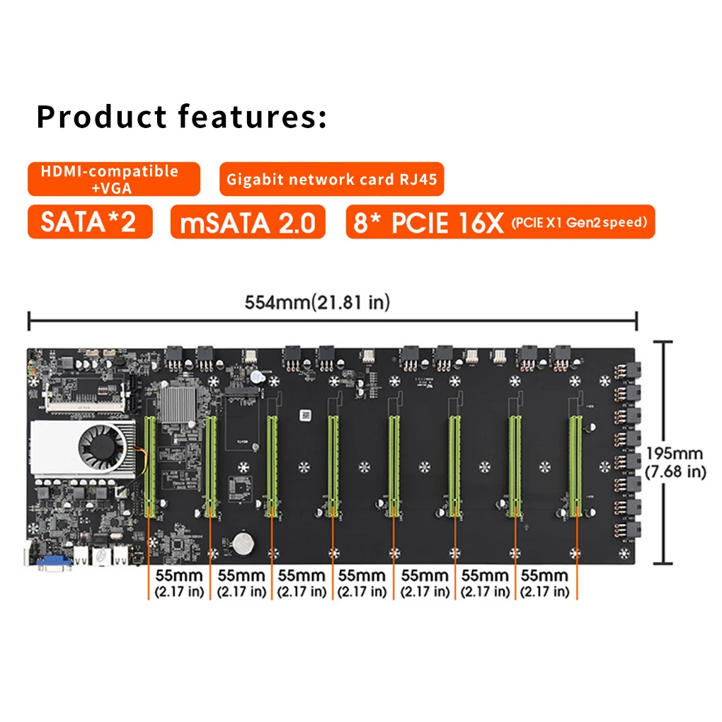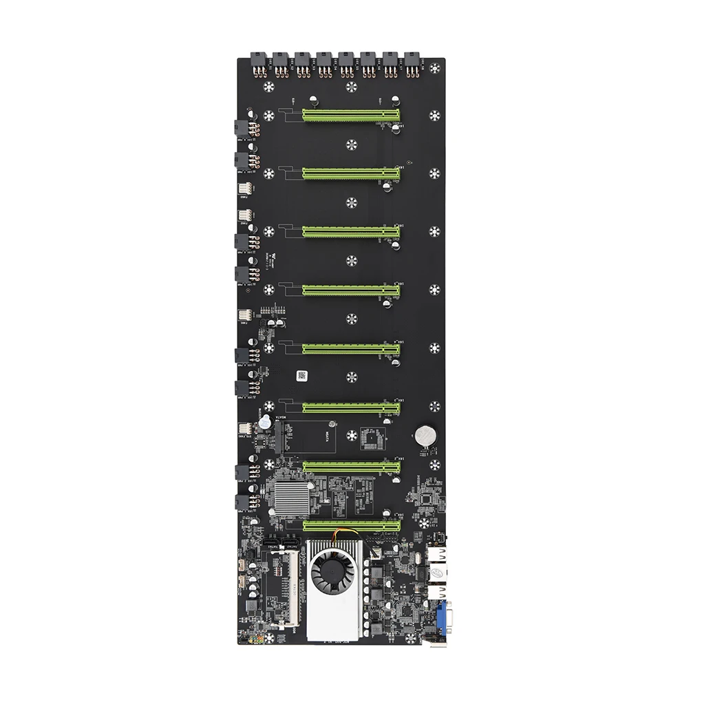 Эта материнская плата разработана с 8 слотами PCI-E 16x, что означает, что вы можете подключить с 8 GPU.Эта материнская плата 8 PCI-E оснащена конденсаторами для обеспечения стабильного напряжения устройства.Эта интегрированная материнская плата процессора имеет множество видов портов, таких как порт VAG, порт HDMI, порт SATA, порт USB, сетевой порт и многое другое.Эта материнская плата изготовлена из прочного и прочного материала и надежна в использовании и долговечна в использовании.Эта материнская плата компьютера отличается низким энергопотреблением и низким уровнем шума, и материнская плата не будет создавать много тепла.