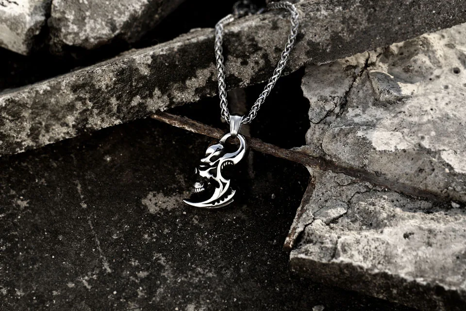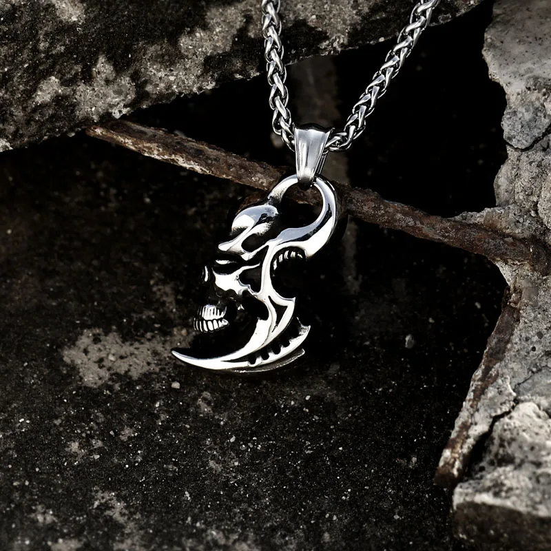Сталь солдат панк Стиль в форме полумесяца с рисунком черепа кулон ожерелье ювелирные изделия череп подвеска, амулет тяжелые цепи ювелирные изделия