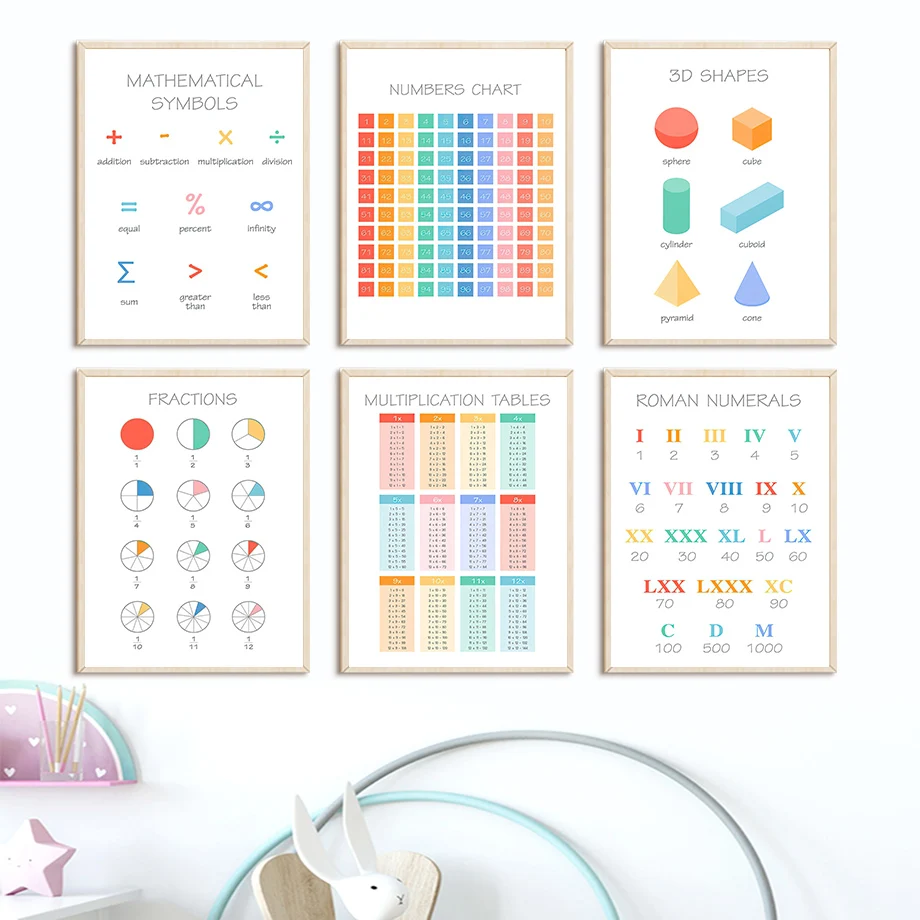 Алфавит цифровой месяц стол обучение детская комната настенная Карт...