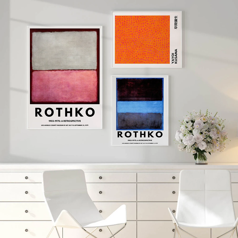 Выставочный плакат Mark Rothko, синий, розовый, желтый, Художественная печать Yayoi Kusama, винтажный музей детской живописи, домашний декор