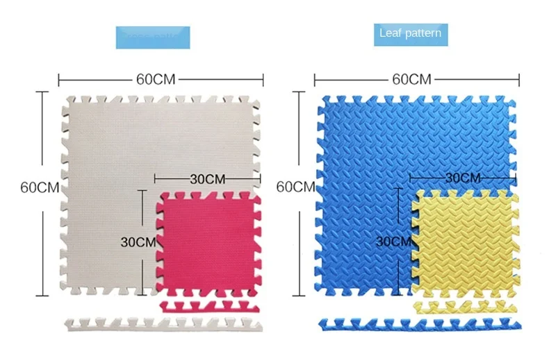 Размер: толщина вспененных продуктов будет иметь погрешность около 2 мм. Размер-это максимальное расстояние между концами зуба, включая кромную полосу, и будет погрешность около 5 мм. Это нормальное явление. Около 2 штук 30*30 спецификаций будут отправлены на один край полосы, и 1 2 части будут распределены на один квадрат