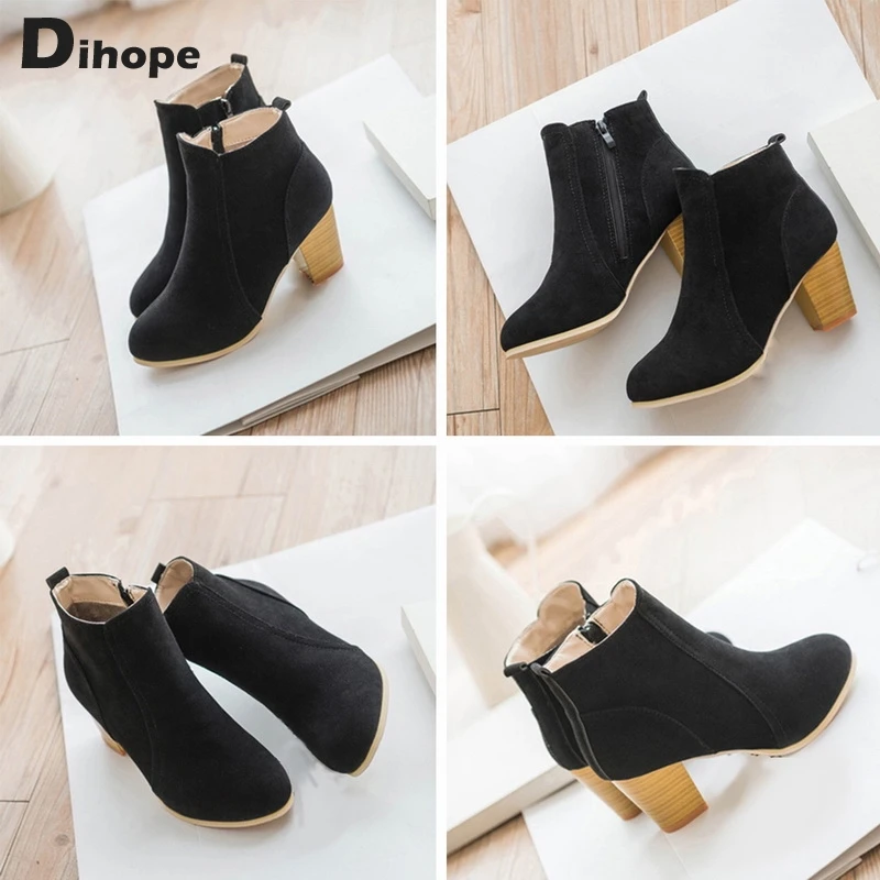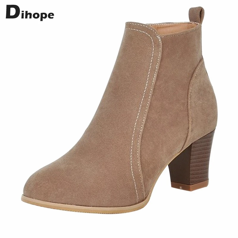 Женские ботинки с острым носком Dihope, осенне-зимние короткие ботинки на высоком каблуке, европейская обувь, Размеры 35-43