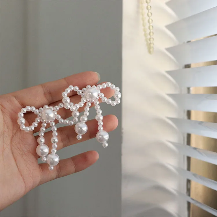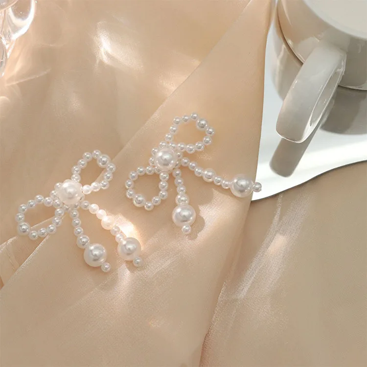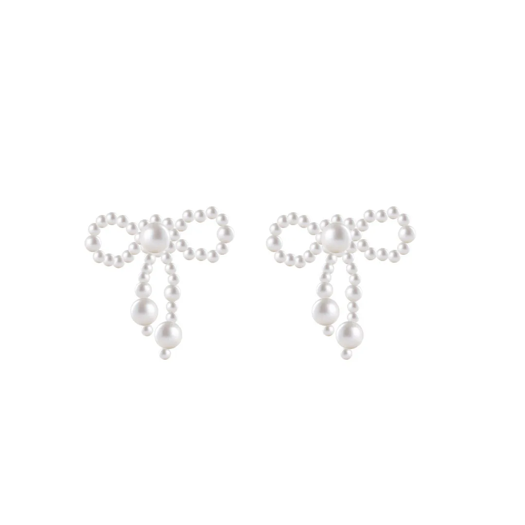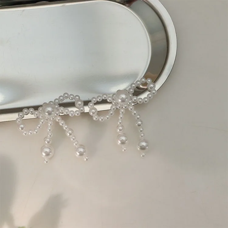 Жемчужные серьги 2021, трендовые серьги-гвоздики в стиле ретро с бантом, элегантные женские украшения из белого лазера