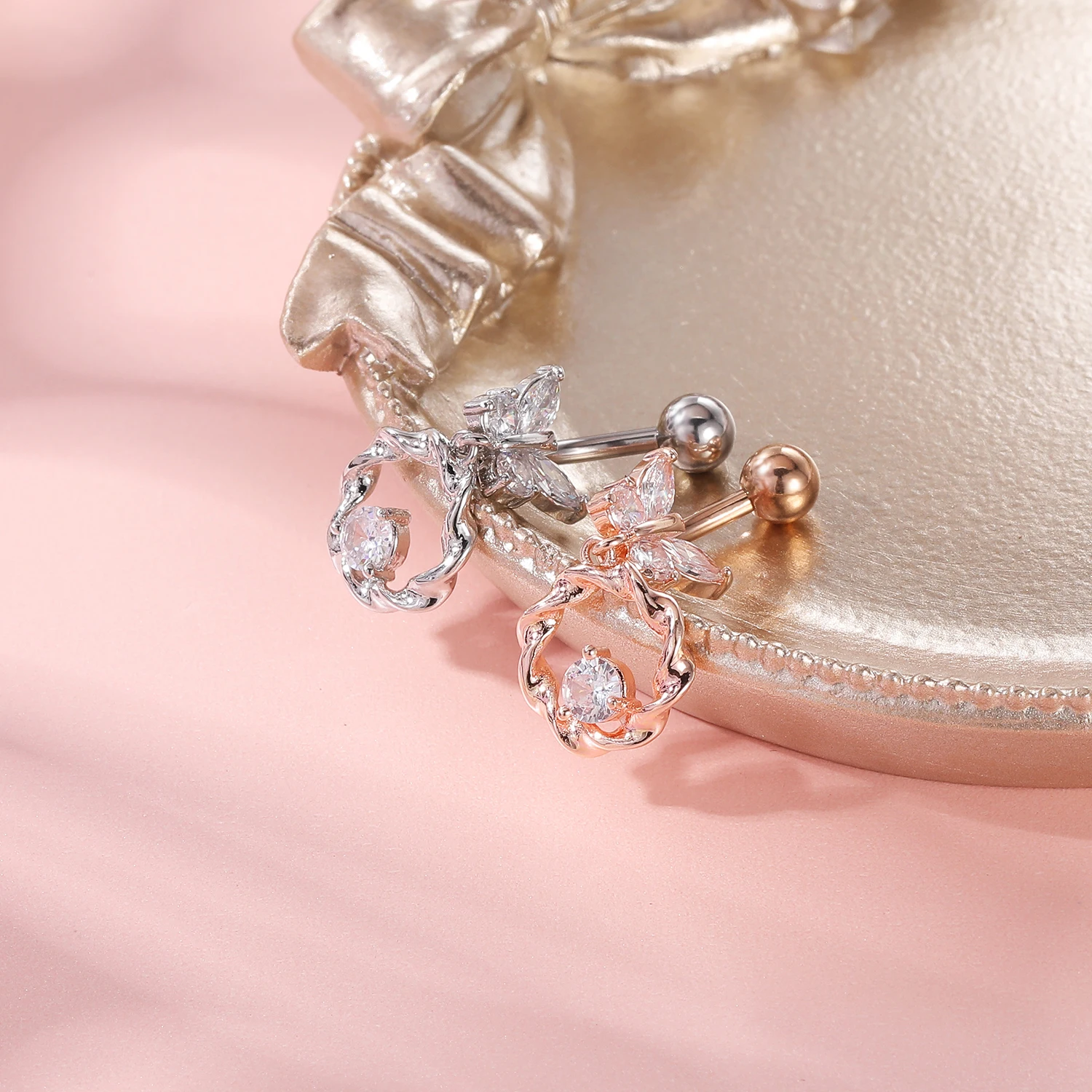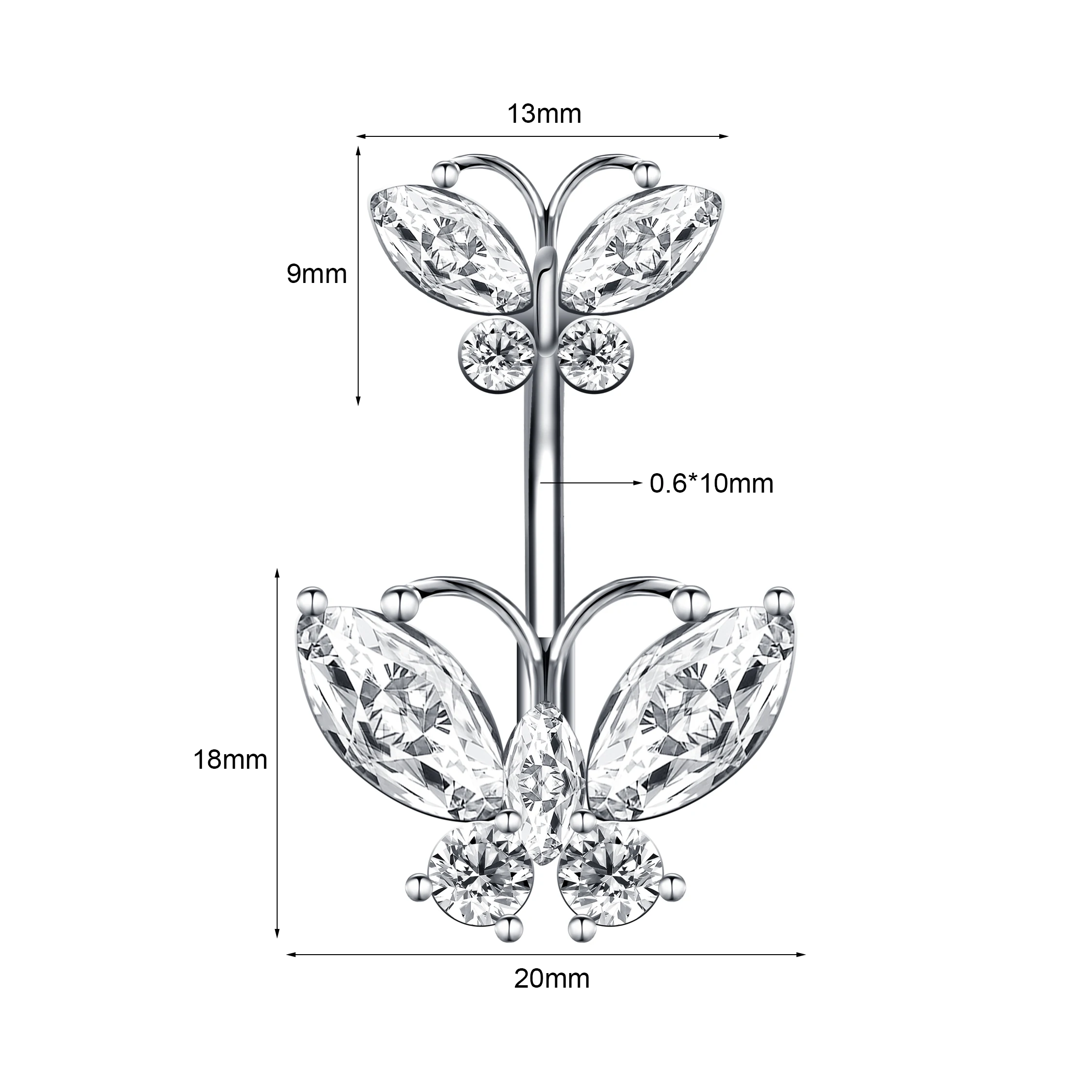 ZS 16G Бабочка пирсинг для пупка из нержавеющей стали пупка кольцо для женщин Красочные Кристальные бабочки сексуальный пирсинг для тела подарок
