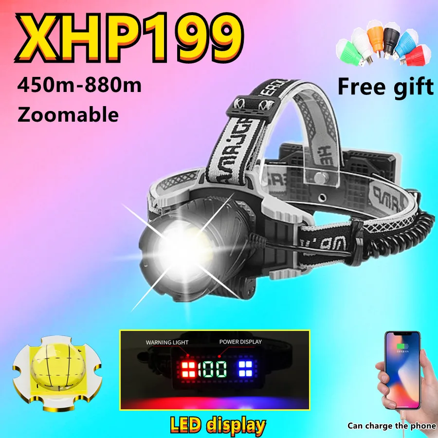Мощный светодиодный налобный фонарь, 18650 лм, 18 часов работы