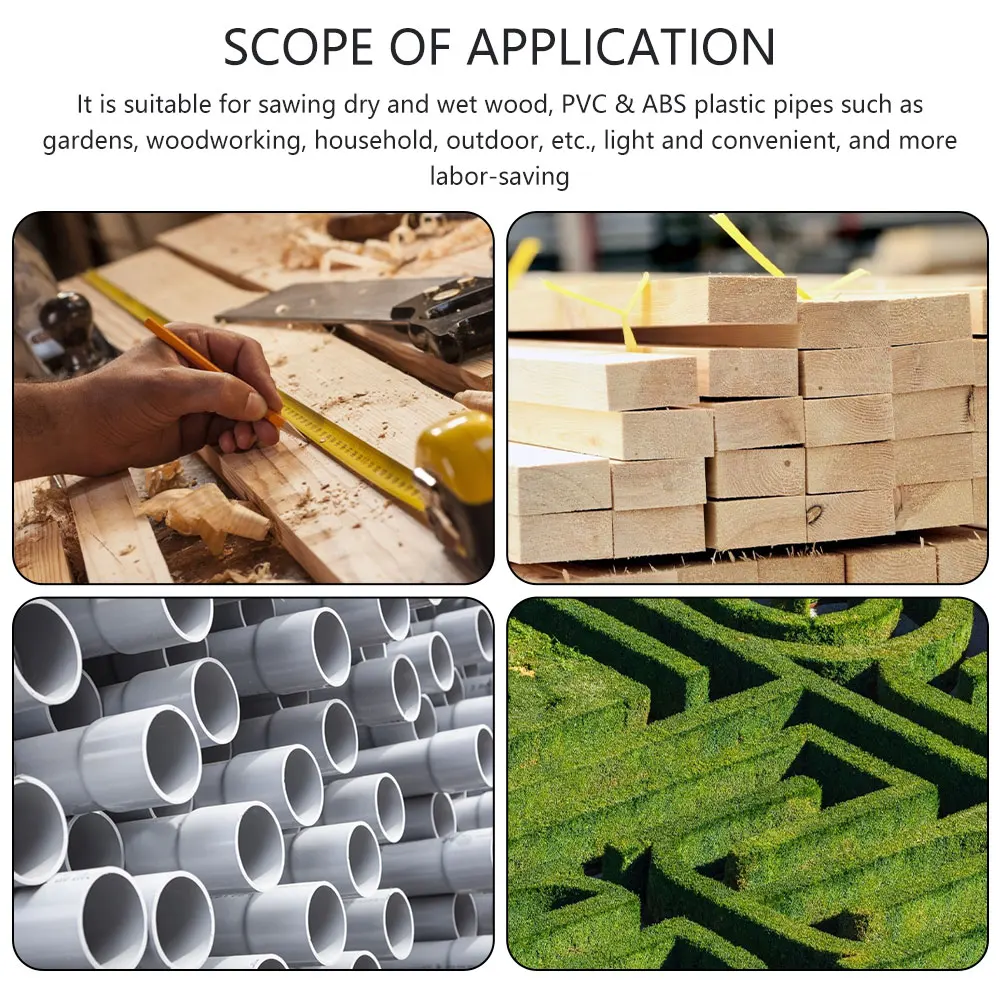 【Широкое применение 】наша ручная пила подходит для садоводства, деревообработки, домашнего, наружного и другого сухого и влажного дерева, ПВХ и АБС-пластиковая трубка для пилинга, также легкая, удобная и экономичная.