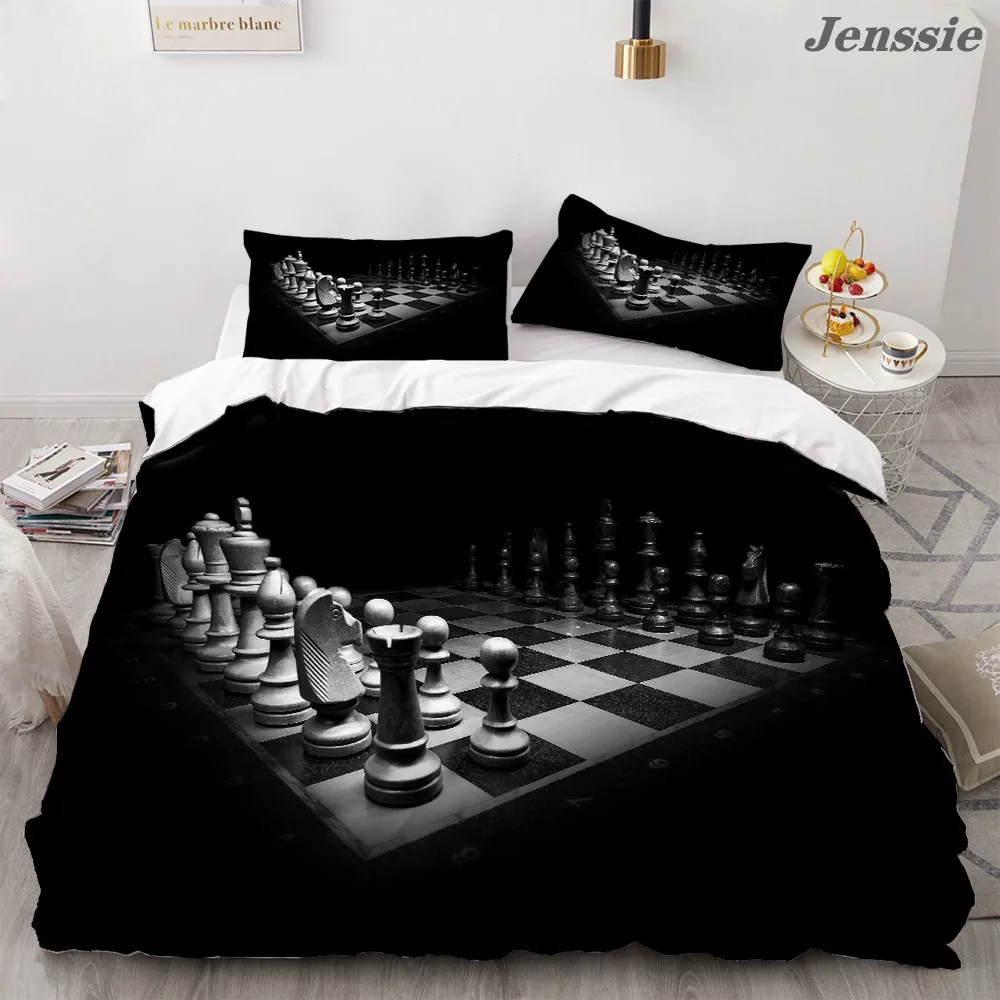 Черно-белая шахматная доска 3D Печатный Комплект постельного белья шахматы пододеяльник для взрослых пододеяльник 2/3 шт. роскошный пододеяльник с наволочкой