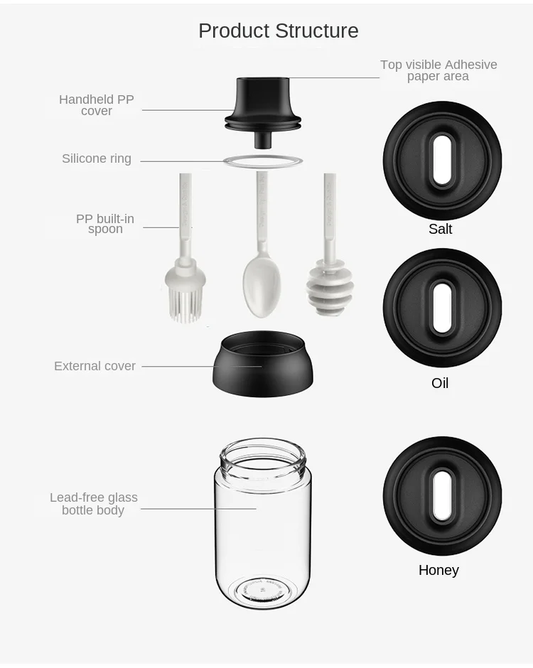 -1. Ложка для крышки спроектирована из одного куска, что удобно брать, экономит время и силы и является влагостойким.-2. Бессвинцовое стекло используется для выдерживания высоких температур.-3. Различные модели. Бутылка для кистей, бутылка для ложек, бутылка для меда. Может использоваться для хранения различных cruet.