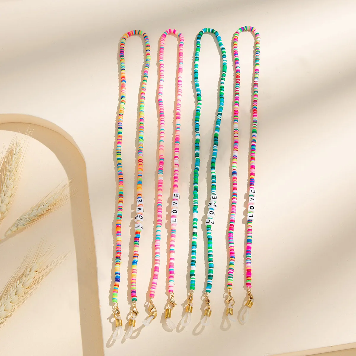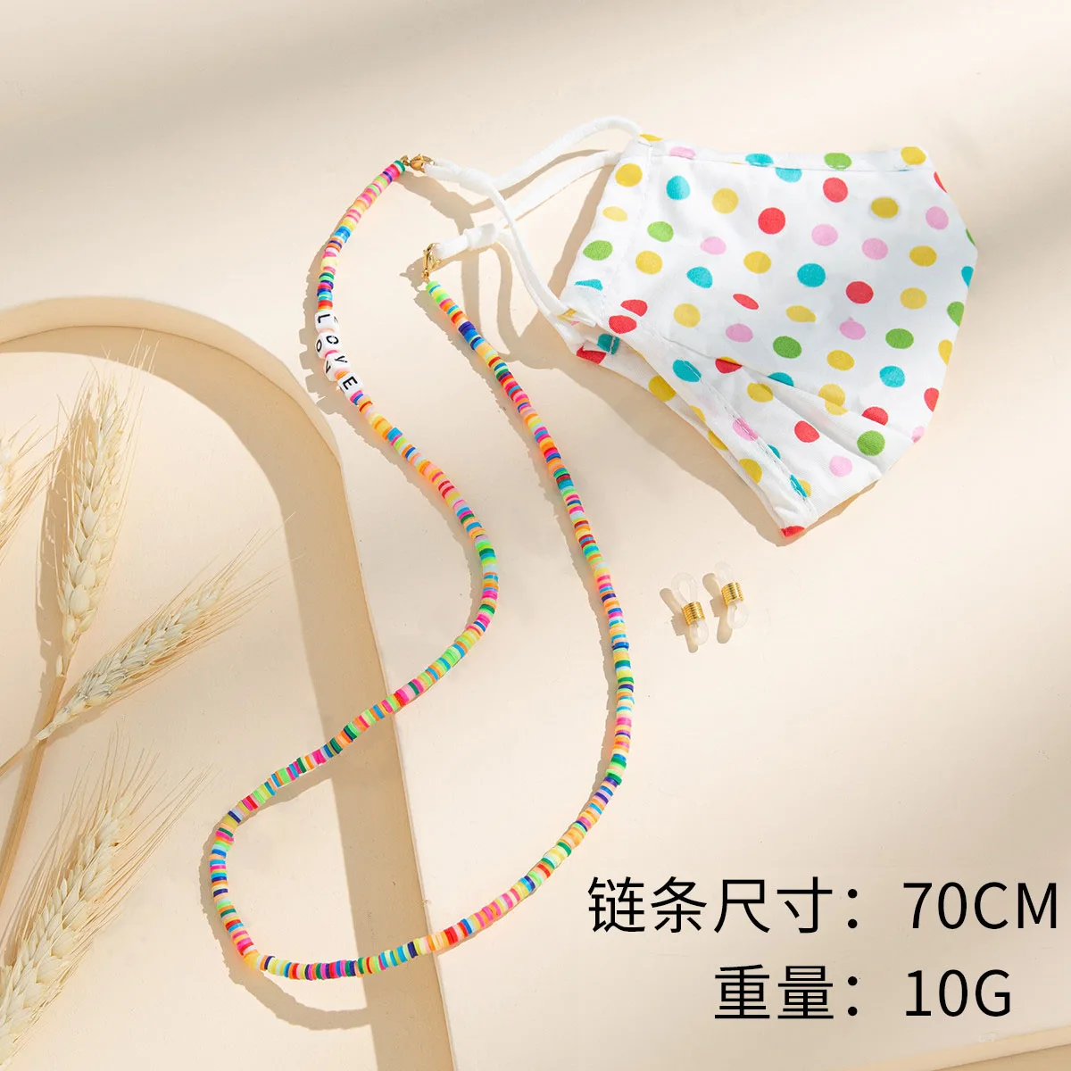 Женская цепочка для солнцезащитных очков из полимерной глины с радужными бусинами
