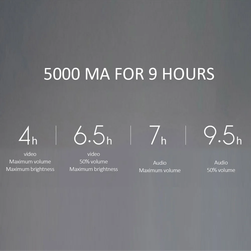Время работы: 4 часа видео (Максимальная громкость, максимальная яркость экрана)Видео 6,5 часов (громкость 50%, максимальная яркость экрана)7 часов звука (Максимальная громкость)9,5 часов звука (50% громкости)
