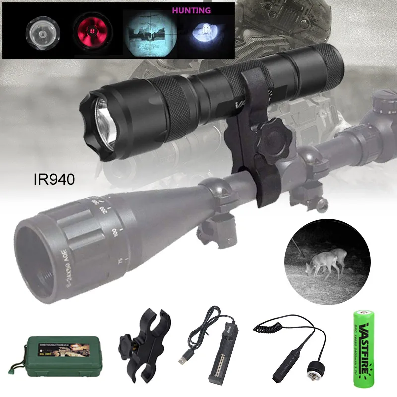 502B ИК 850nm940nm светодиодный фонарь, тактический охотничий ИК-светильник ночного видения для свиней, крепление для прицела, задний переключатель, 18650 + зарядное устройство