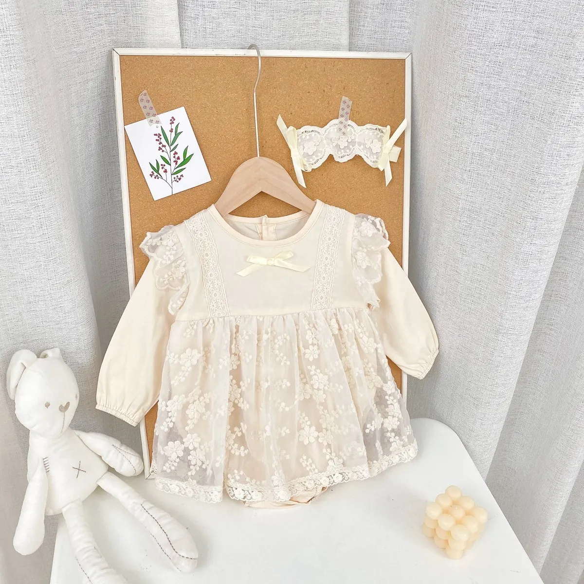 MILANCEL, Новинка осени 2021, детская одежда для девочек, Кружевное боди с длинным рукавом, круглым вырезом и повязкой на голову