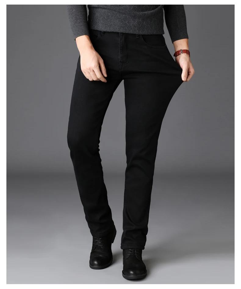 Джинсы мужские стрейчевые, классические черные брюки Slim Fit из де...