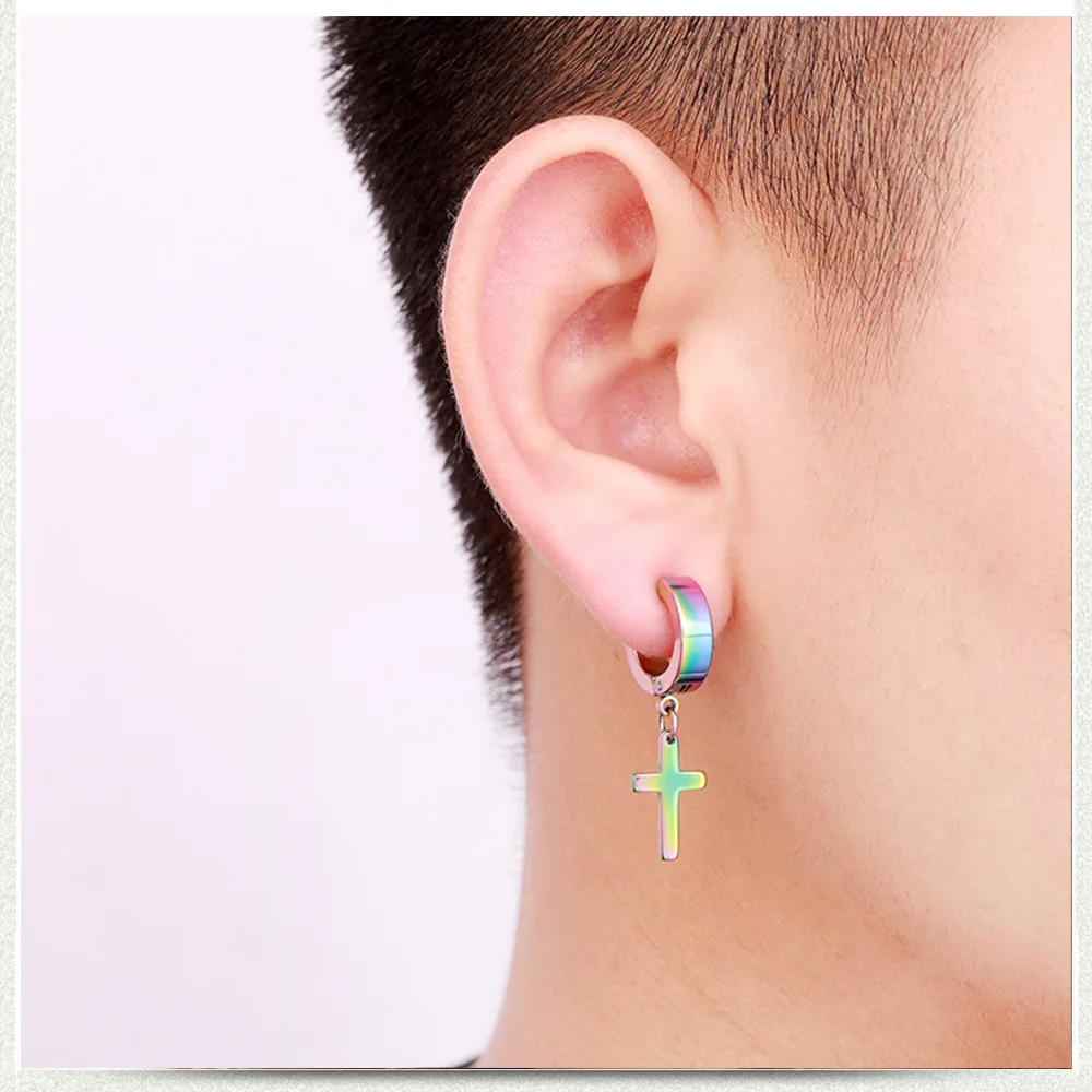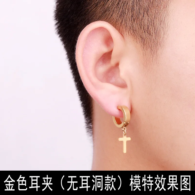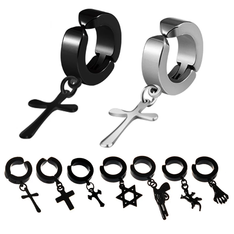 Новинка, стильные стальные серьги-клипсы в стиле панк, цвет черный, серебристый, нержавеющая сталь, крест, подарок для мужчин и женщин, ювелирные изделия, 1 шт.