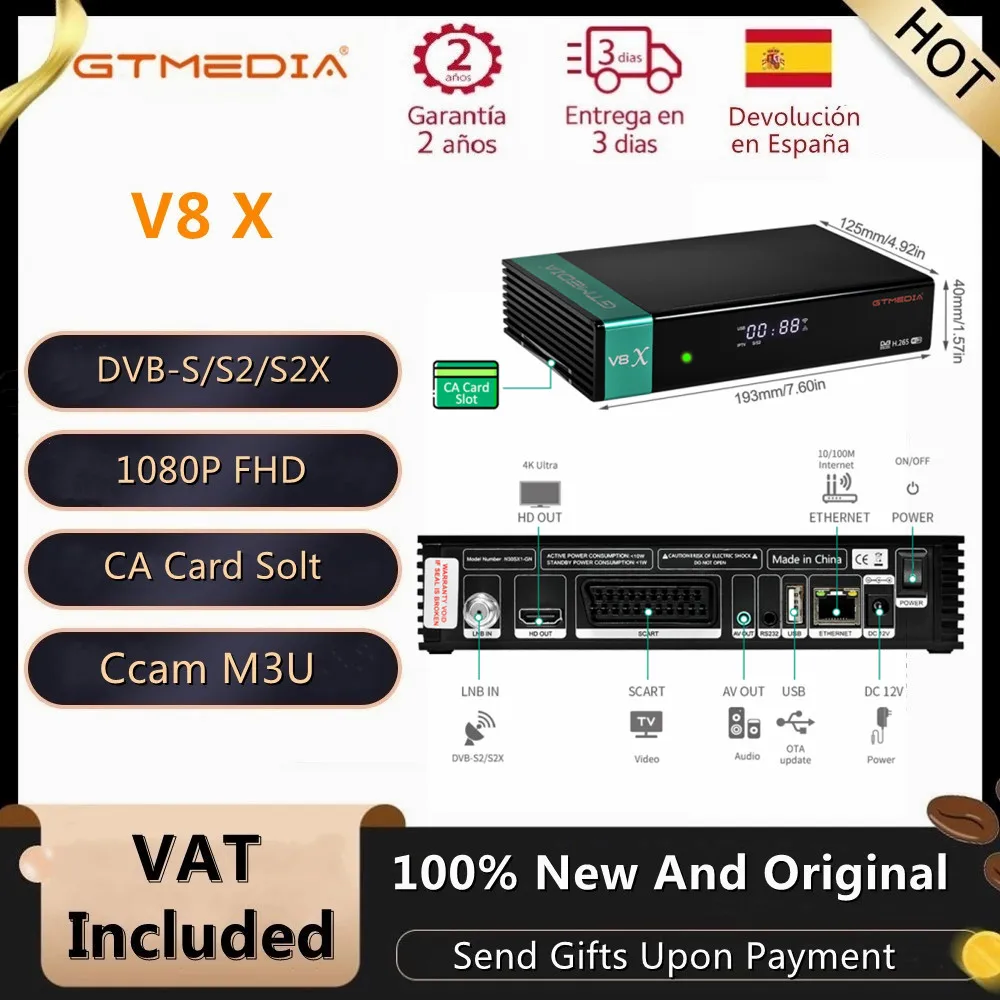 Спутниковый ТВ-приемник GTMEDIA V8X DVB-SS2S2X 1080P, поддержка H.265 CCAM, обновление через V8 Nova, спутниковый декодер, отправленный из Испании